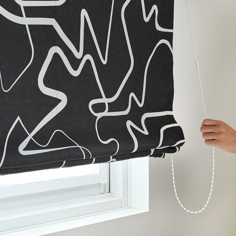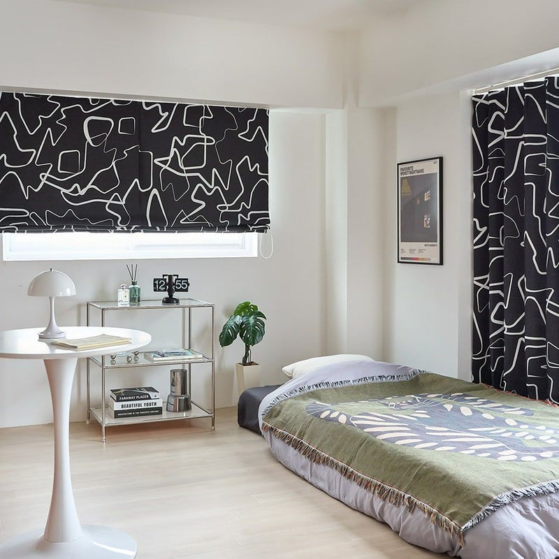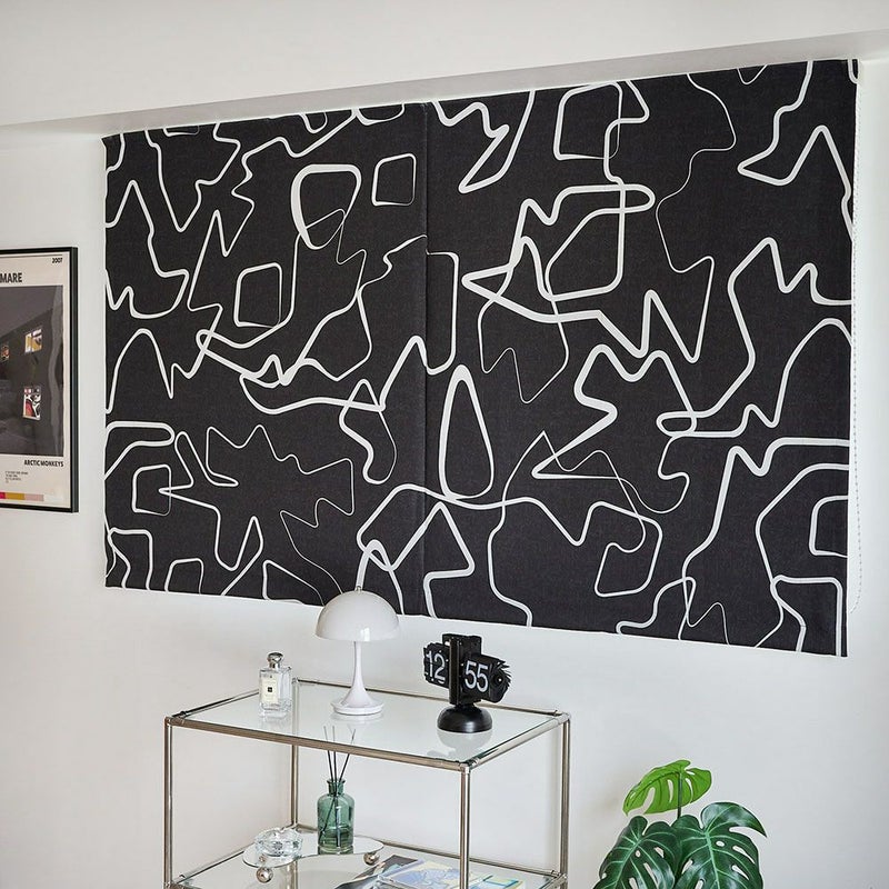 シンプルな空間に映える、大柄のモダンアートチックな遮光シェードカーテンです。 一見適当かのように見える力加減のまばらなラインデザインは、不思議な魅力を感じさせます。 空間のアイキャッチとしての役割も担う、アートな1枚です。