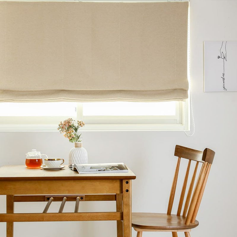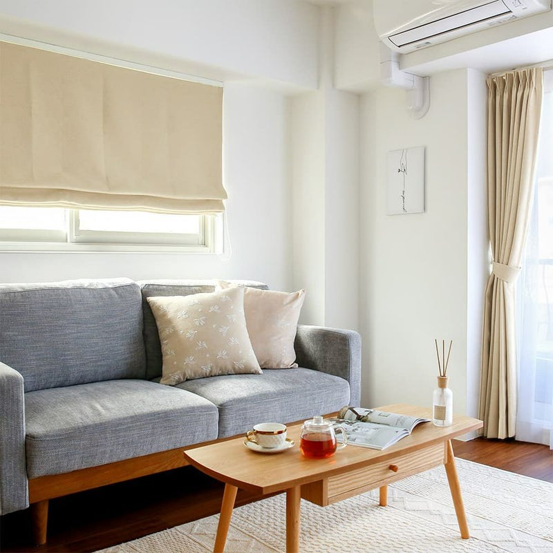変わらない人気のベージュカラー。そして安心の遮光!遮光カーテンで重たく見えがちなお部屋も、柔らかな風合いの生地とシェードでスッキリ解消させませんか?