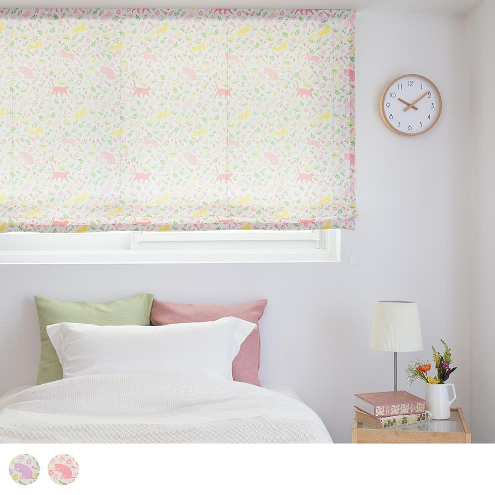 可愛いもふもふの小悪魔「猫」。大人から子供までみんなの心を奪うなんともキュートなその姿を、シェードカーテンに詰め込んで。猫好きさんにはたまらない自由気ままなお散歩猫の姿と、非遮光生地ならではの光を通すシェードカーテンで、明るく可愛い窓辺の完成です。