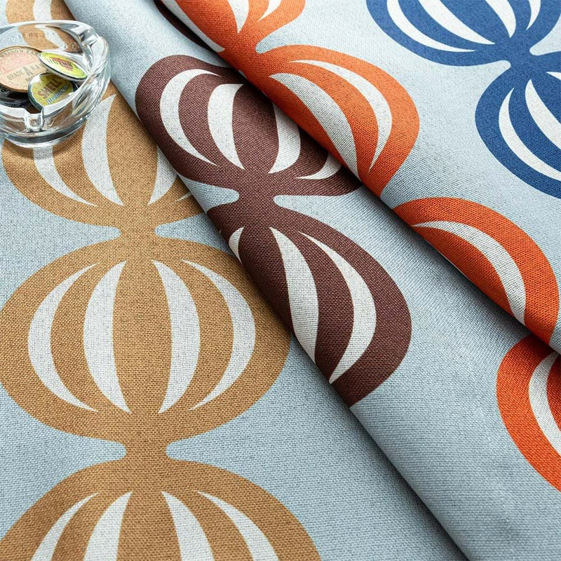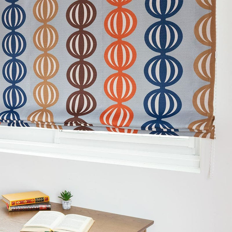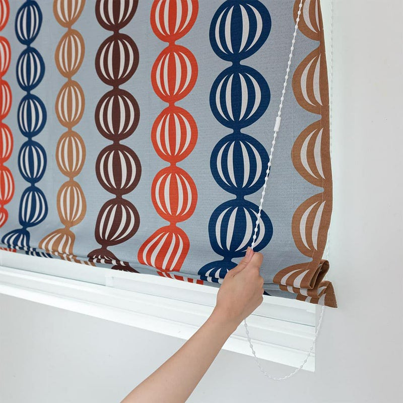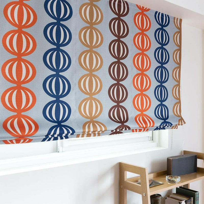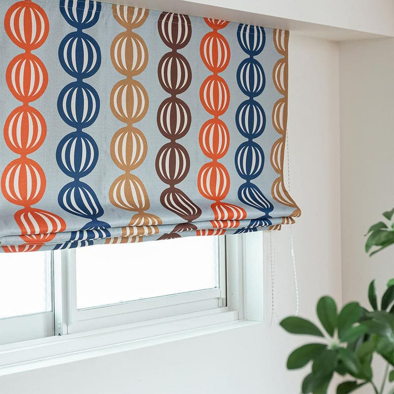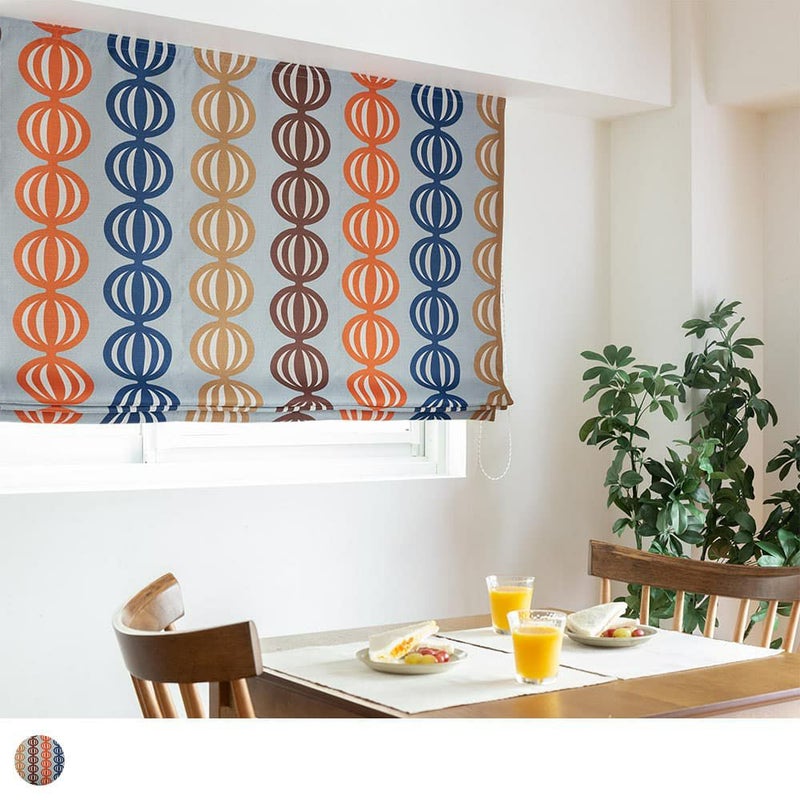 ヴィンテージ味溢れるカラフルな配色と、ポップな柄を組み合わせたデザインのシェードカーテン。オレンジを半分に切ったような楕円デザインは、ユニークで心をくすぐられるポイント。ヴィンテージアイテムたちが集まるエモい部屋にピッタリのお洒落シェードカーテンです。