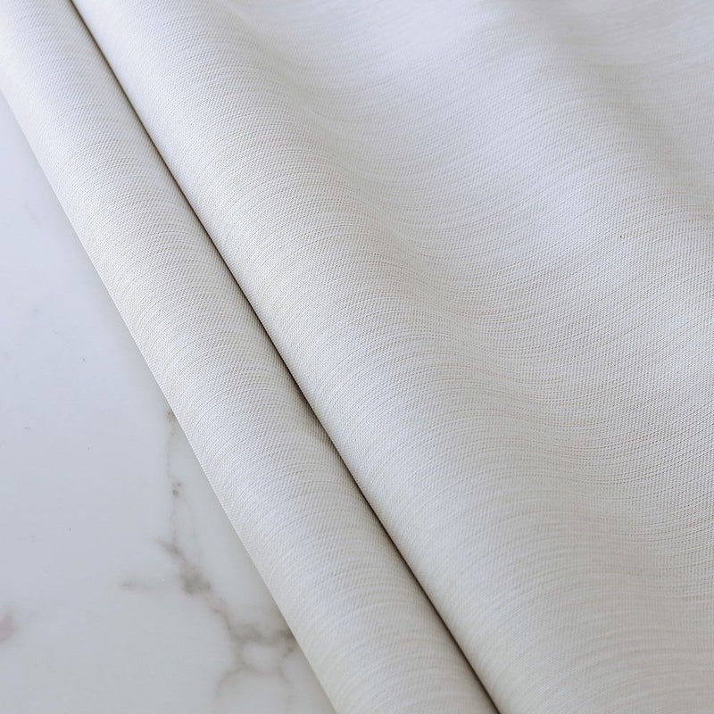 当店の白いカーテンの中でも最も上品といっても過言ではない<スノー>。うっすらとみえるゴールドの糸が美しい白をさらに上品に引き立てる、人気のカーテンと共生地のシェードをご紹介します。