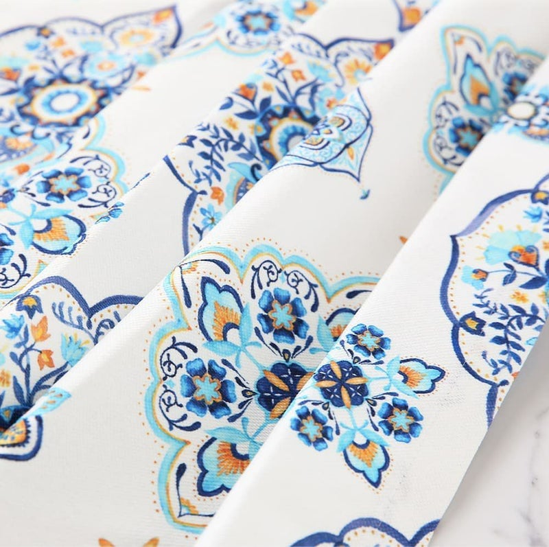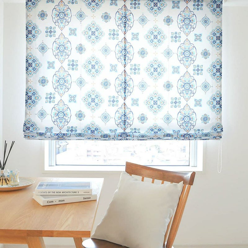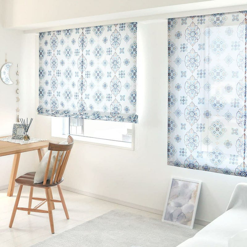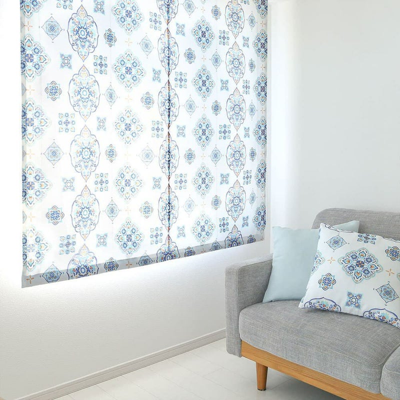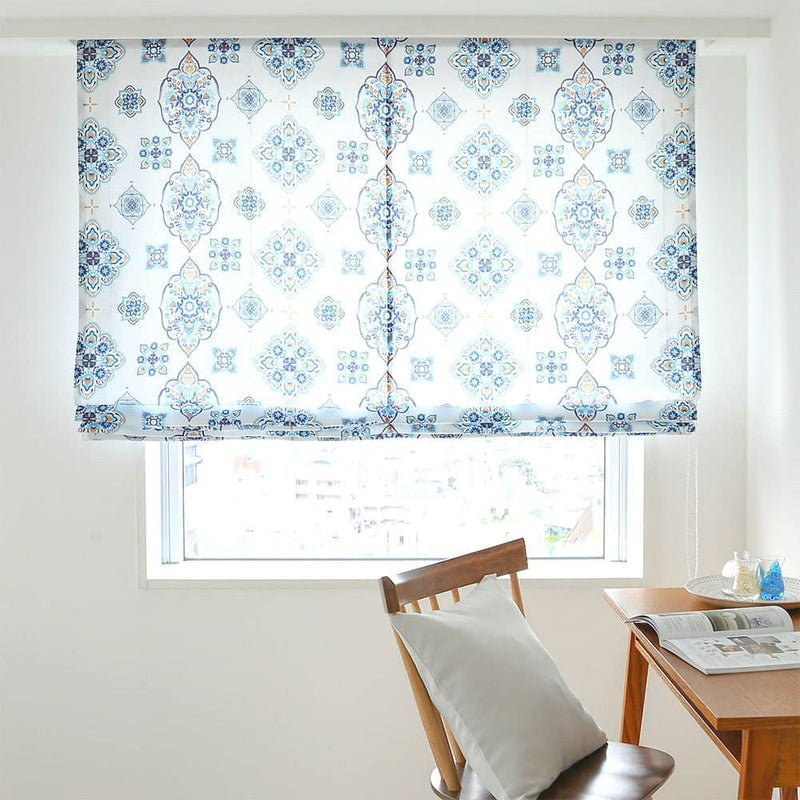 マジョレルブルーと呼ばれる青が印象的な閑静な庭園をイメージした色に、伝統的なモロッカンタイルデザイン。 品のある華やかさが、お部屋を見事に彩ってくれる当店オリジナルシェードカーテンです。