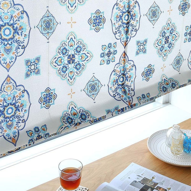 そしてモロッコの宮殿の壁に飾られるタイルから連想するイメージを筆で描いたかのような、水彩タッチのシェードカーテンです -