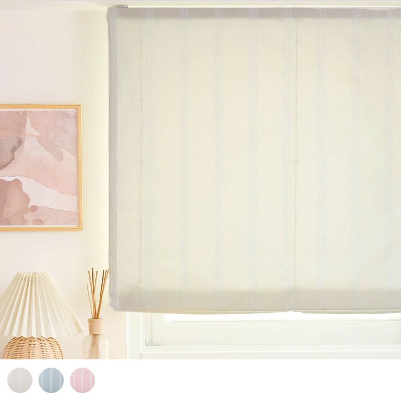 ストライプ状に入った白い刺繍がアクセントとなり、無地のシェードカーテンよりももっと大人可愛い雰囲気に♪シェードカーテンだからこそ縦のラインが綺麗に出るので、ストライプとの相性も抜群です!
