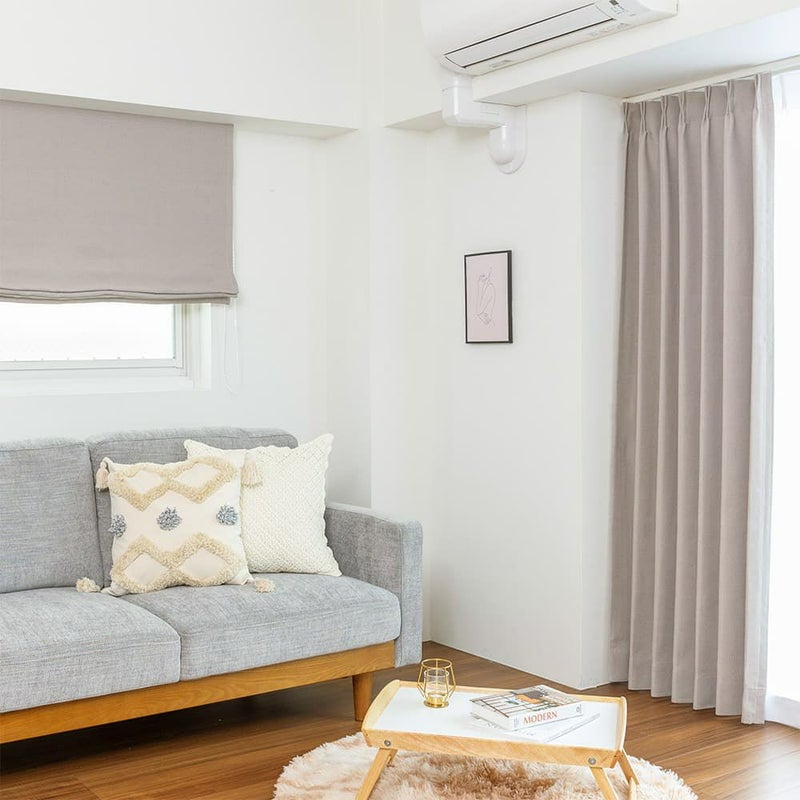 どんなインテリアにも合う、アイボリー、グレージュ、グレーの3色展開。強い日差しからはしっかり守り、程よい明るさだけをお部屋に感じる2級遮光のシェードカーテンです。