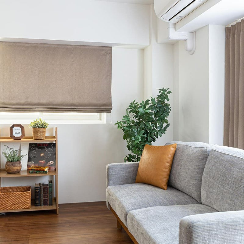 2級遮光のシェードカーテンは、お部屋を真っ暗にし過ぎず、強い陽ざしはきちんと遮ってくれます。生地の特徴とシェードの特徴の相乗効果で、すっきりシャープな印象に仕上がります。