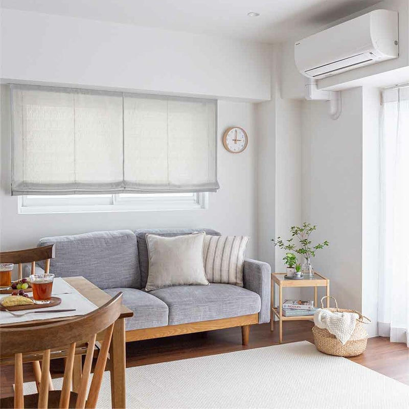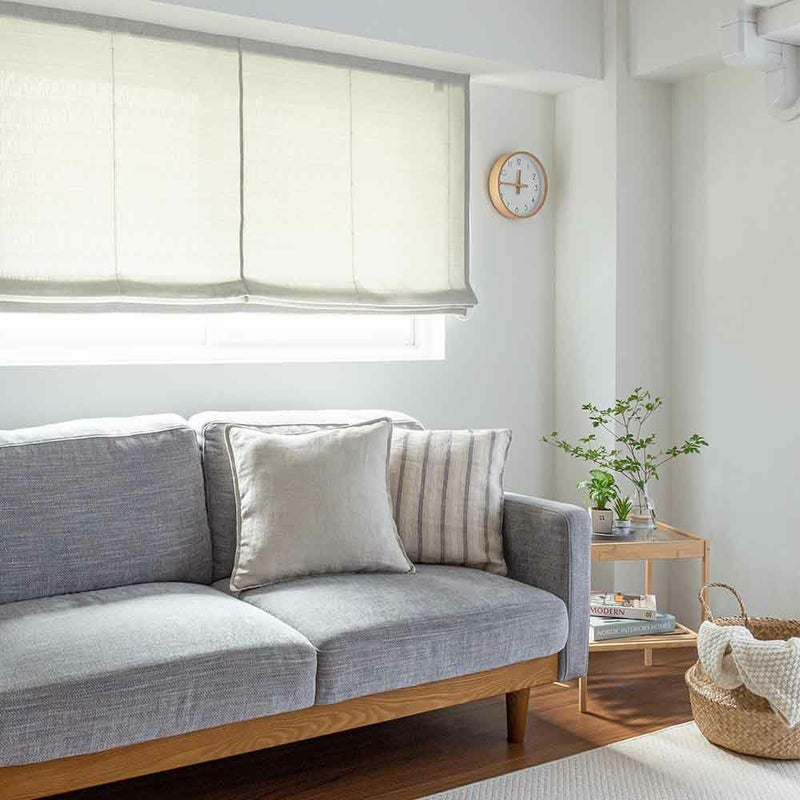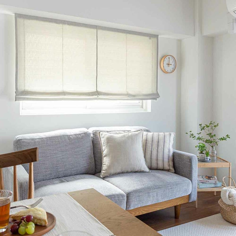 シェードカーテンは窓周りをすっきりと見せてくれます。どんなインテリアとも合いやすく、ナチュラルな生地がお部屋に馴染み、圧迫感のないシンプルな印象に。