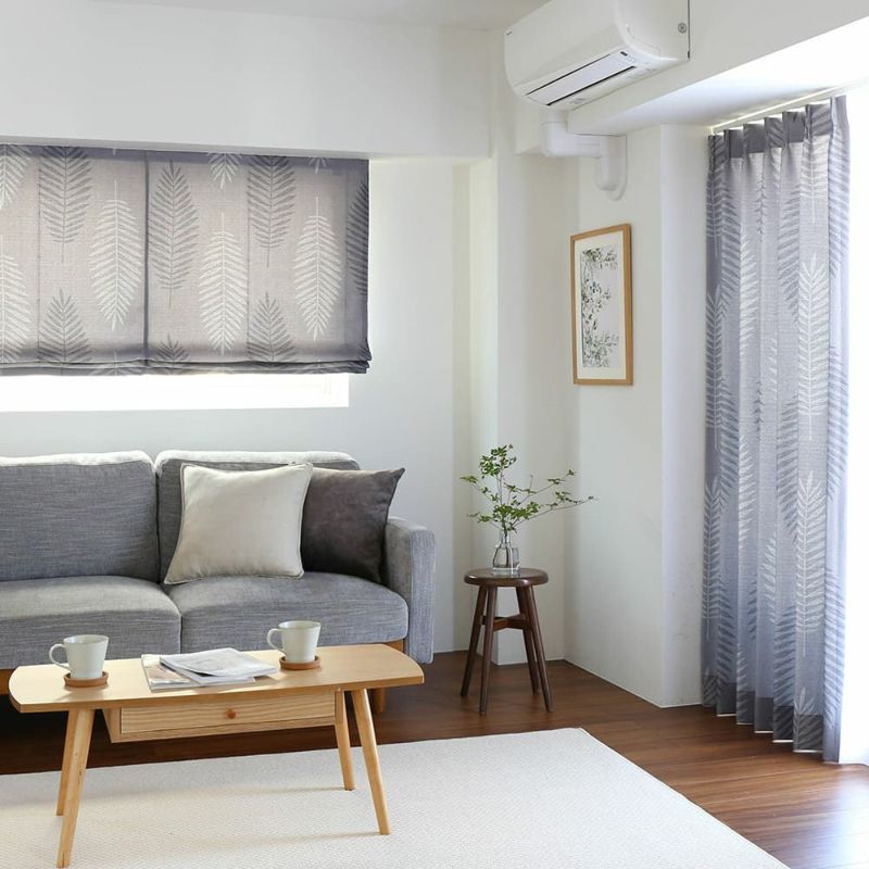 「北欧モダンなお部屋を作りたい」そんな理想を叶えます。落ち着きのあるモダンな配色ながらも目を惹くリーフデザインが窓辺を飾るシェードカーテン。ほっこりとしたナチュラルインテリアに導き、スマートでシンプルな窓辺作りへ。
