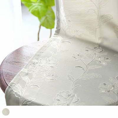 優しい印象のカラーは、ナチュラルなインテリアとも合わせやすい仕上がりに。ジャカードカーテンらしい品のあるデザインもポイント。