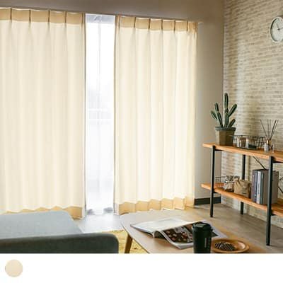 うっすらと浮かび上がるボーダー柄がアクセントになるカーテン。インテリアにも馴染みやすいデザインはリビングや寝室にもおすすめの一枚です。