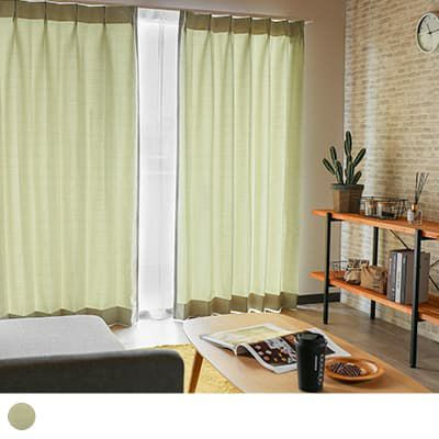 一見無地にも見えるシンプルなカーテンは、細めのボーダー柄になっていて細部にもこだわっています。爽やかなグリーンはお部屋を癒しの空間に。