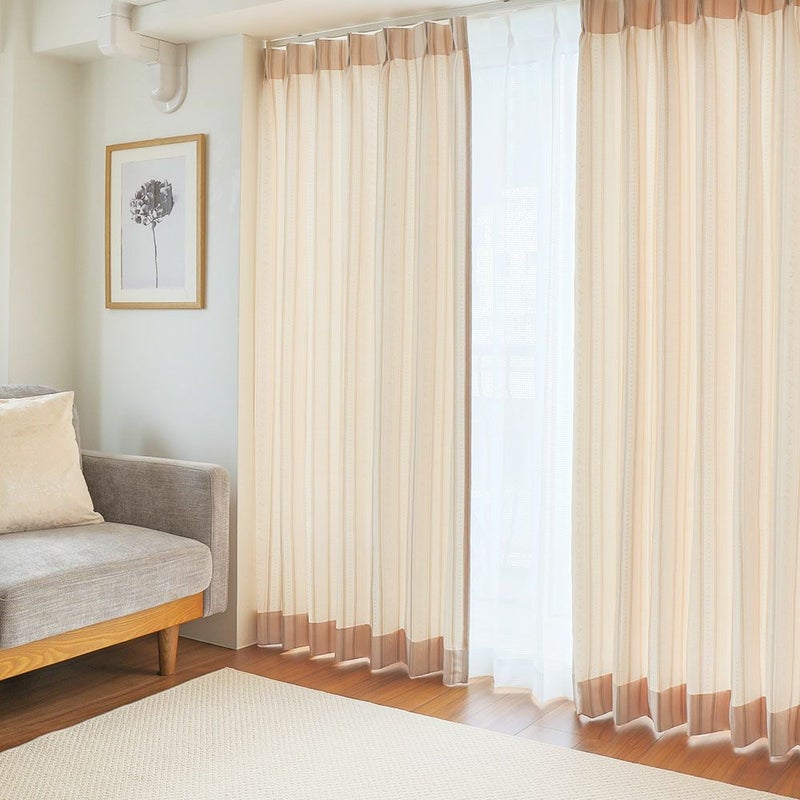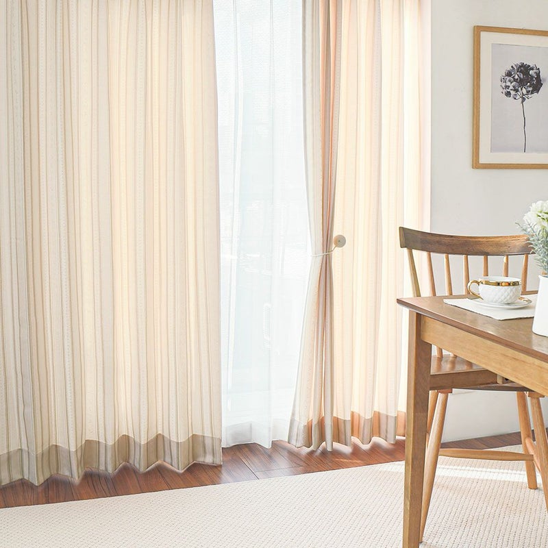 落ち着いた印象と、暖かみを感じるベージュ。アンティークなインテリアにも好相性◎人気のストライプ調デザインが、お部屋に品のある洗練された雰囲気をもたらします。程よく陽ざしを感じさせてくれる非遮光カーテンなので、自然の生活リズムに寄り添う暮らしを叶えます。
