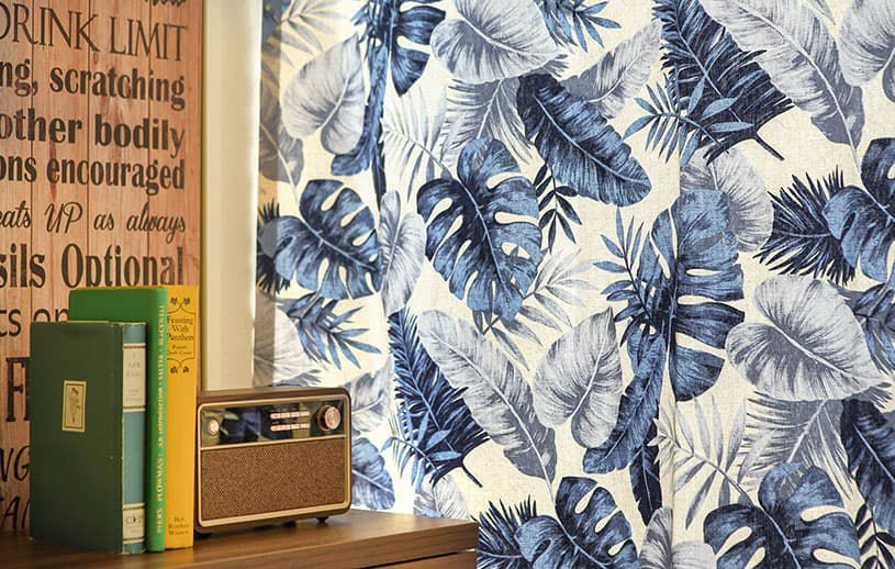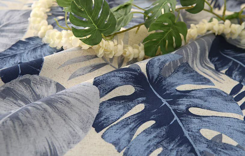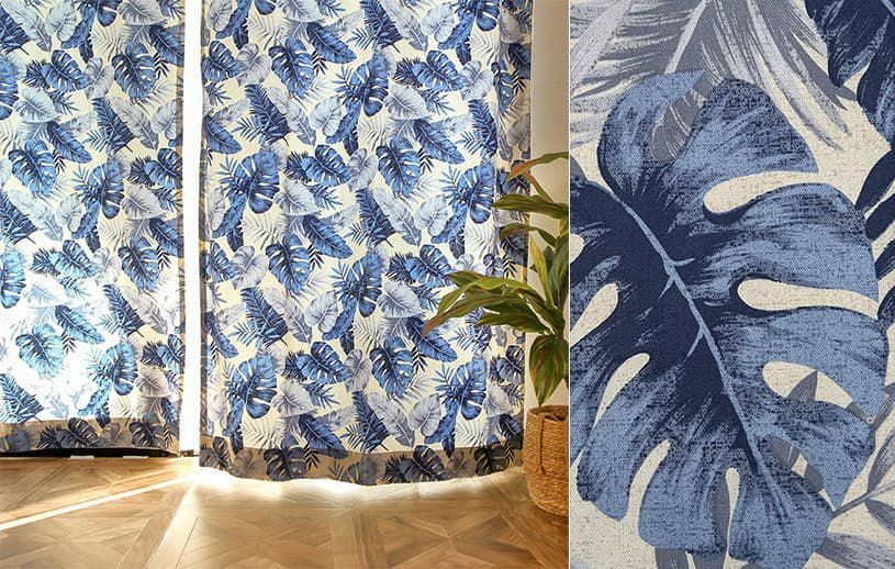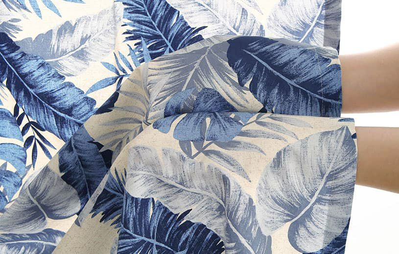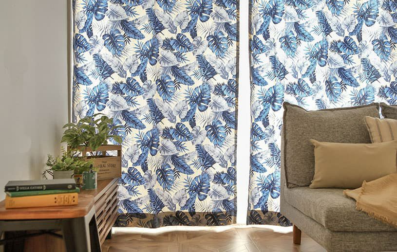 やわらかな手書き風タッチで描かれたハワイアンリーフのカーテン