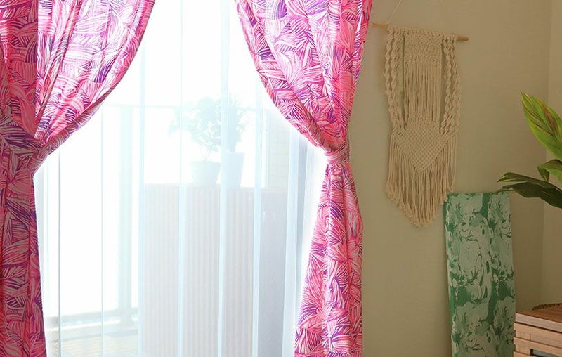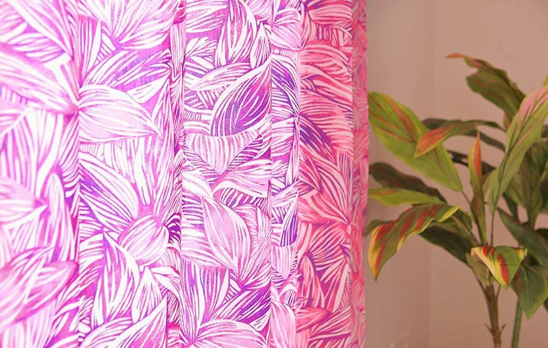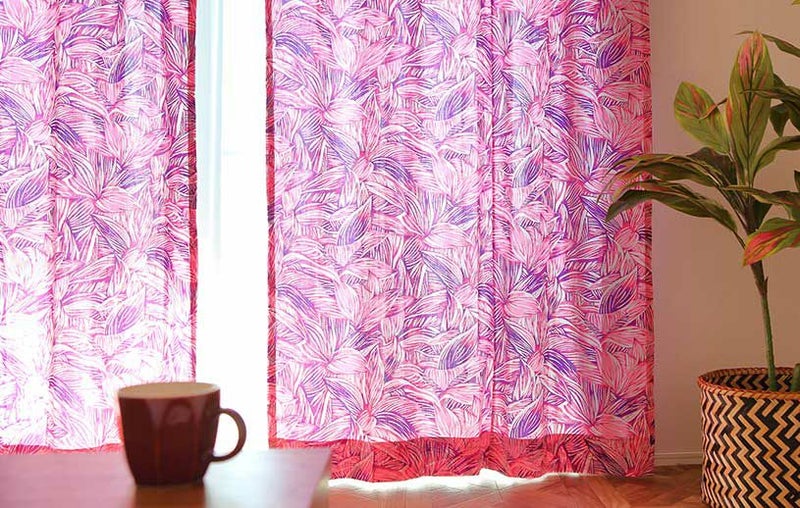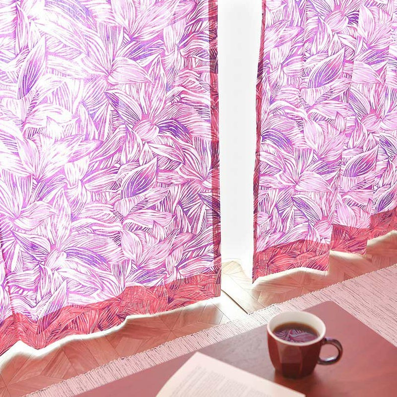 カーテン 生き生きとしたティーリーフ柄から受けるエネルギーで、爽快な目覚めを。