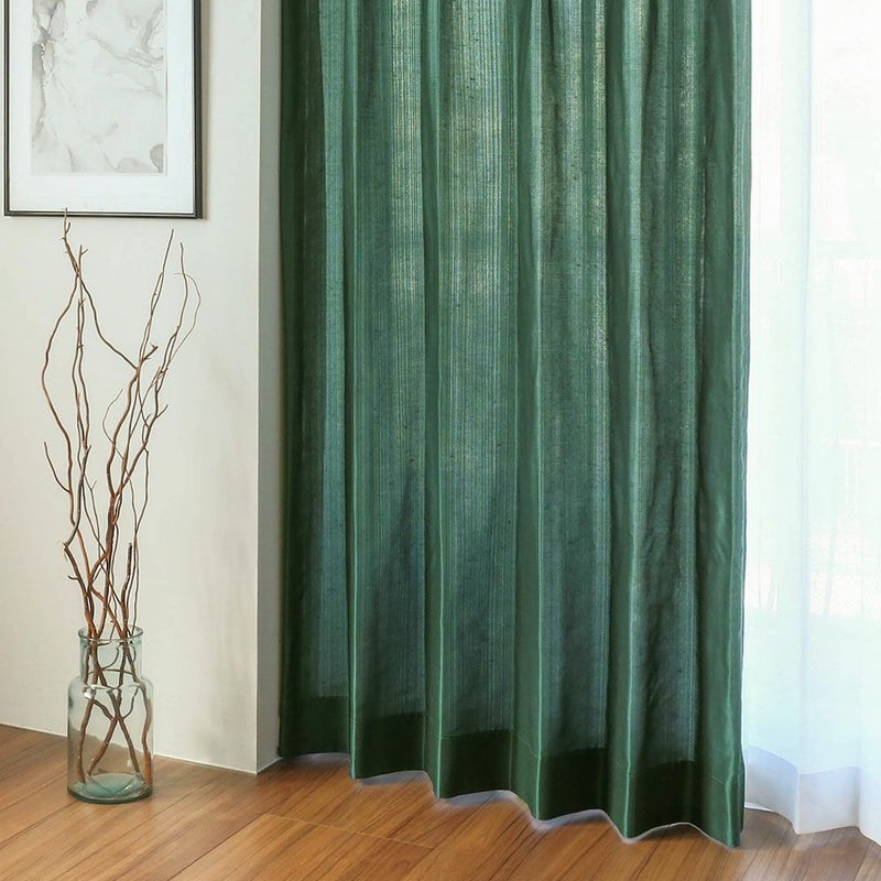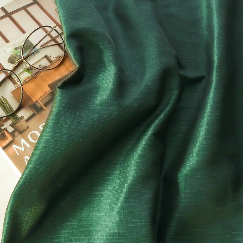 シルクのような質と光沢を表現した、シャンタン調のテキスタイル。ところどころに潜むフシが、織物としての魅力を惹き立てます。大人のシックな装いを叶える「ダークグリーン」のカーテンで、落ち着きのある窓辺に。