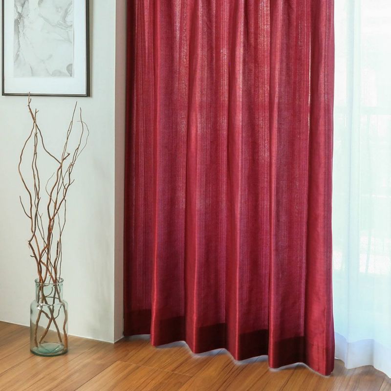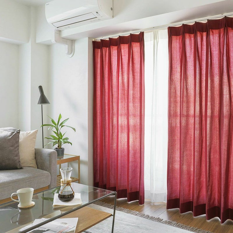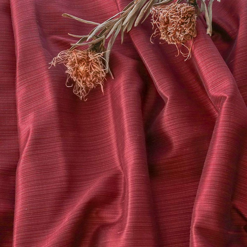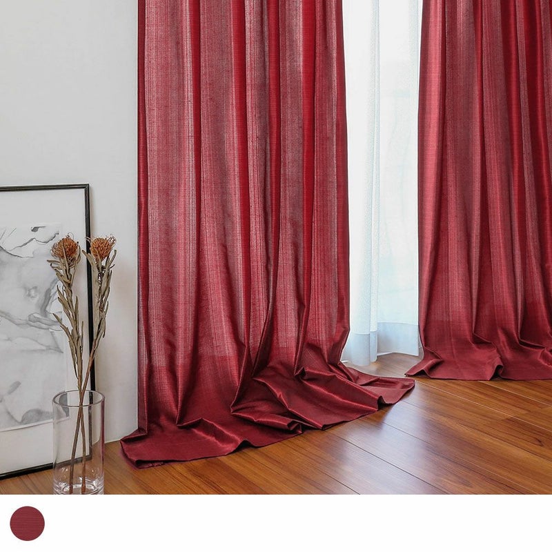 シルクのような質と光沢を表現した、シャンタン調のテキスタイル。ところどころに潜むフシが、織物としての魅力を惹き立てます。インテリアの主役になる、華やかで美しい「レッド」のカーテンで、窓辺をドレスアップ。