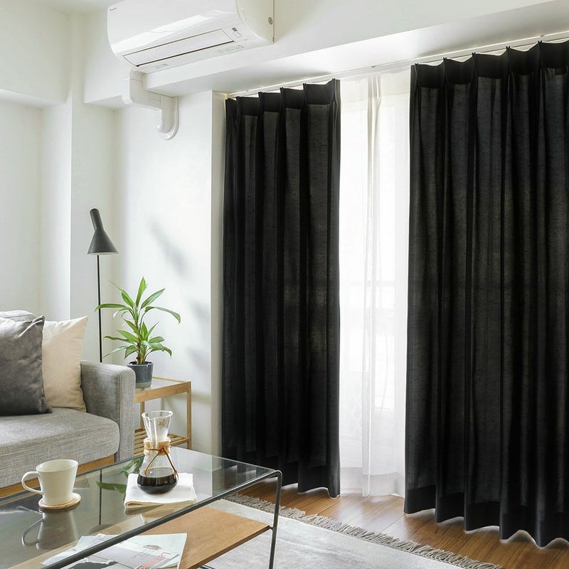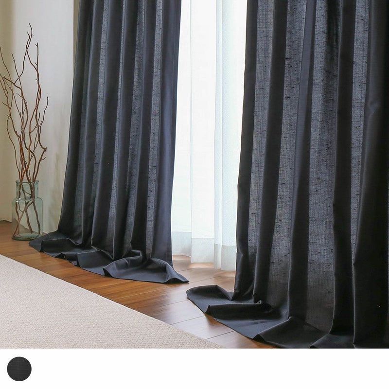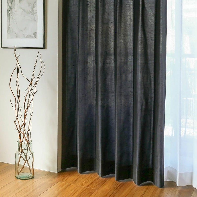 シルクのような質と光沢を表現した、シャンタン調のテキスタイル。ところどころに潜むフシが、織物としての魅力を惹き立てます。クラシカルな雰囲気を演出する「ブラック」のカーテンが、あなたのプライベート空間に寄り添います。