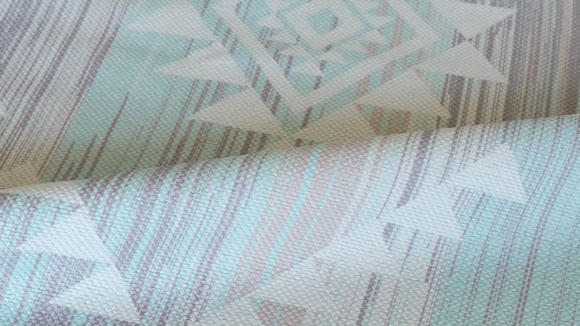 インクジェットプリントならではの繊細な表現で、細かなニュアンスまでも美しく再現。 ネイティブ柄が持つ味わい深い雰囲気を、やさしいパステルカラーでふんわりと描き出しています。