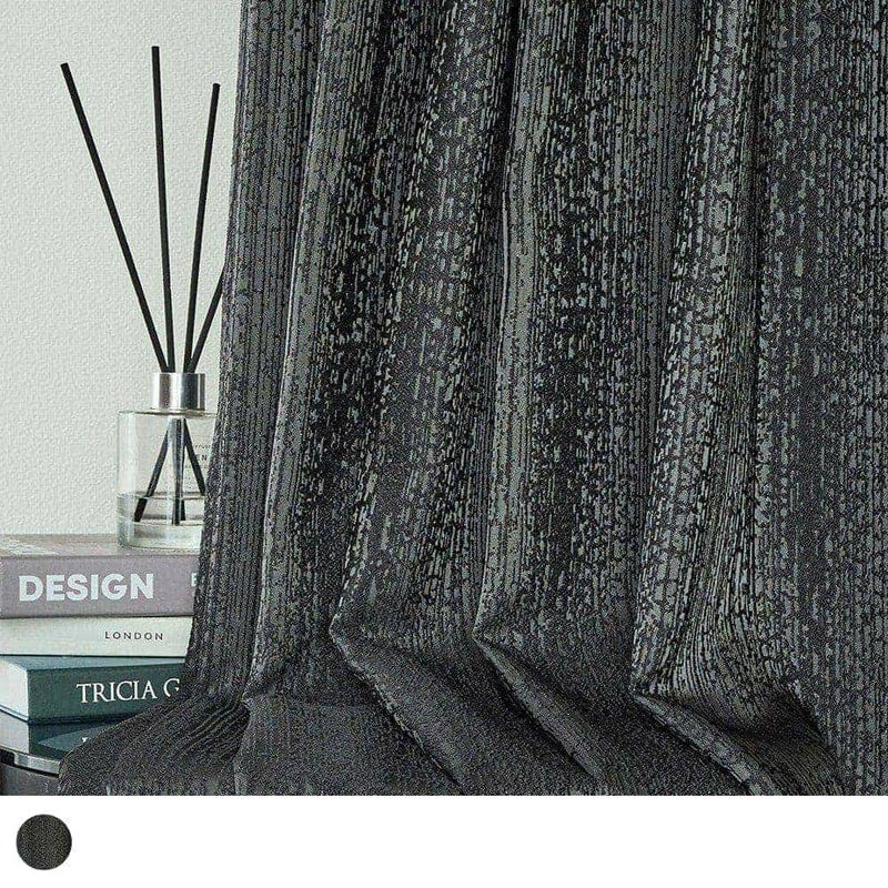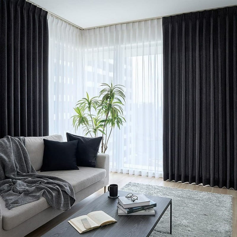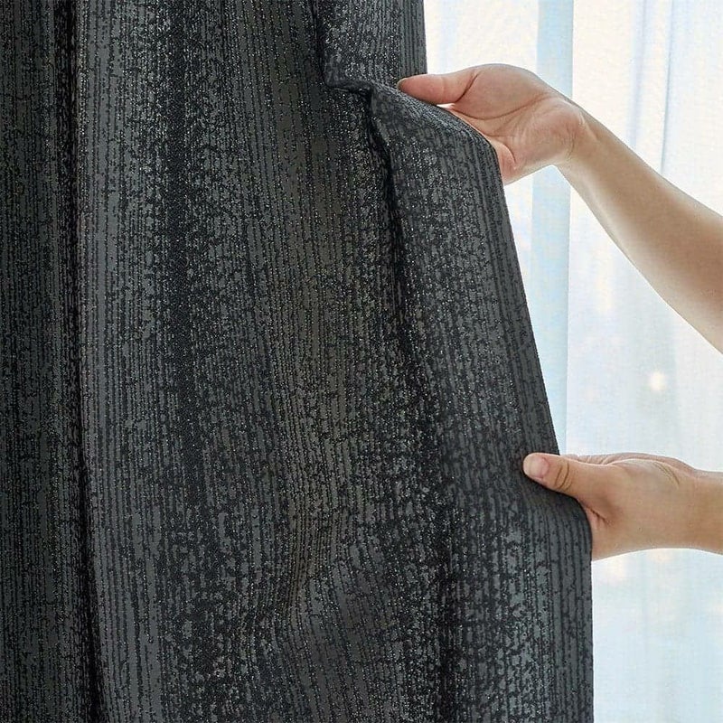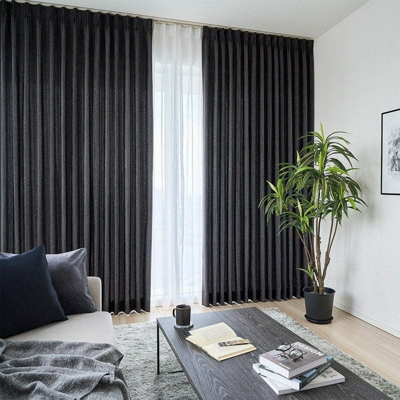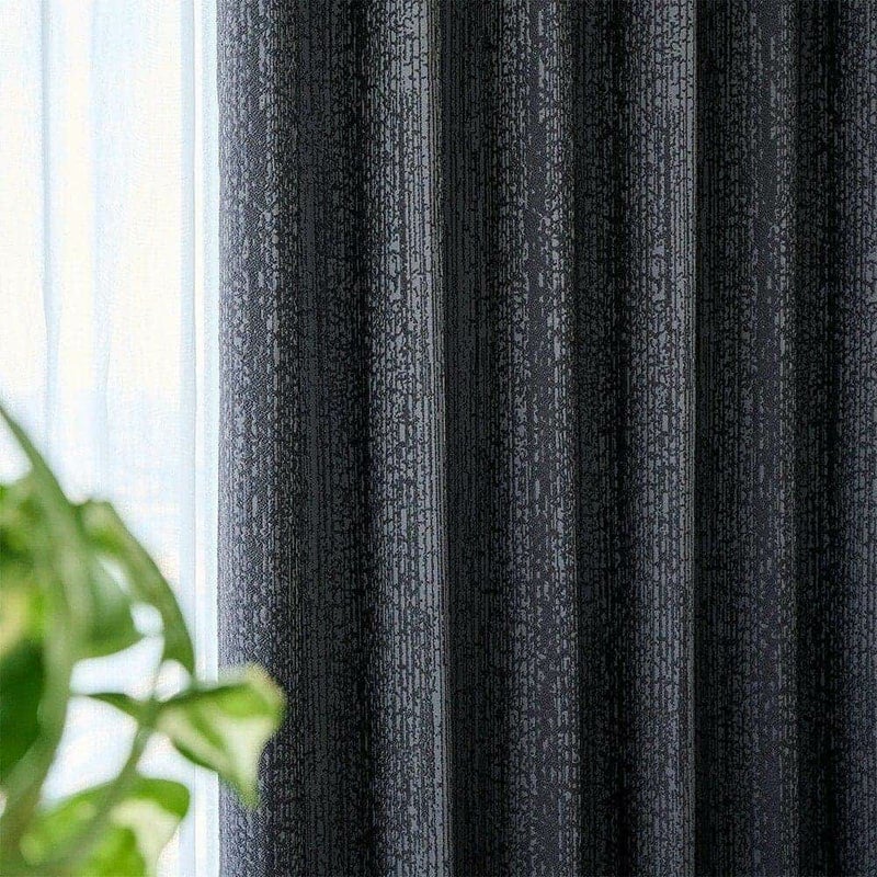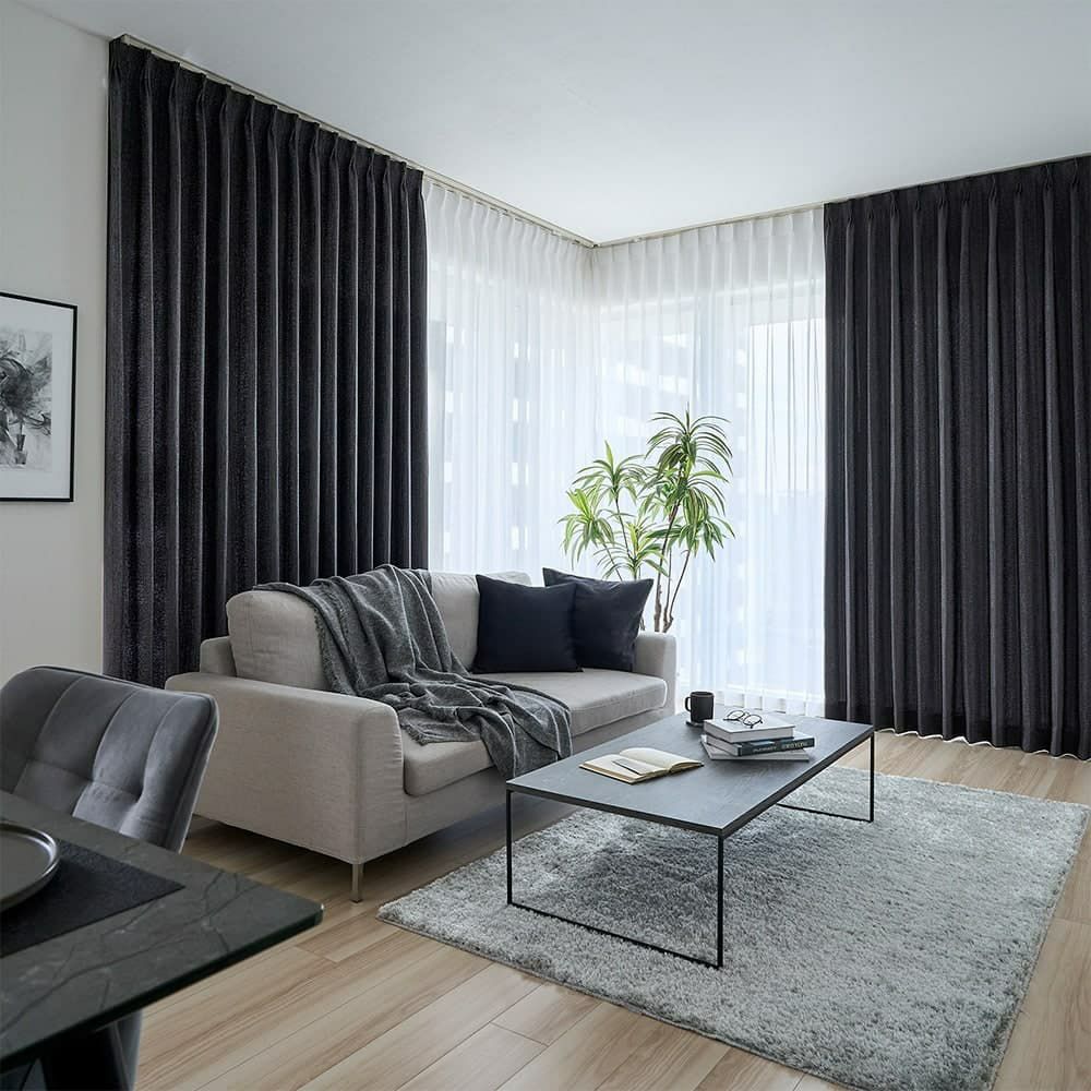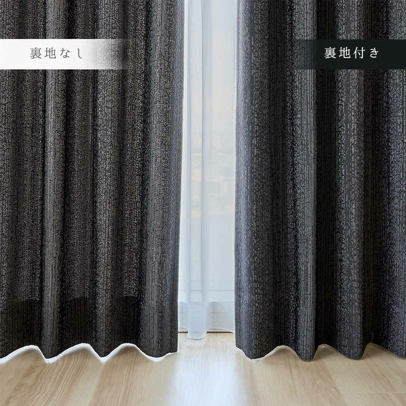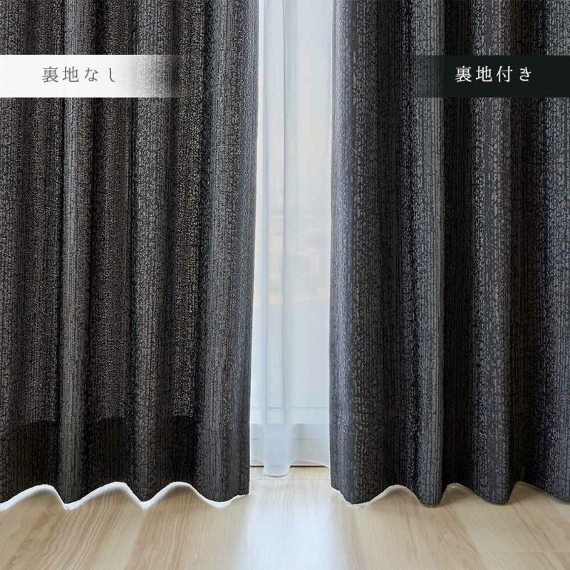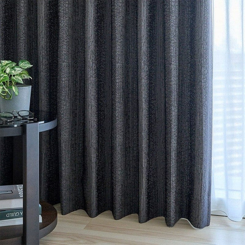 水滴模様がどこか儚げな印象を空間に与える。 部屋を包み込む艶やかなブラックが、植物を瑞々しく引き立てるだろう。 静かな空間を求める大人のモダンインテリアに。遮光カーテンが生みだす、自分だけの時間を愉しもう。