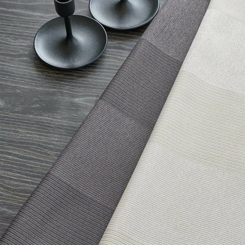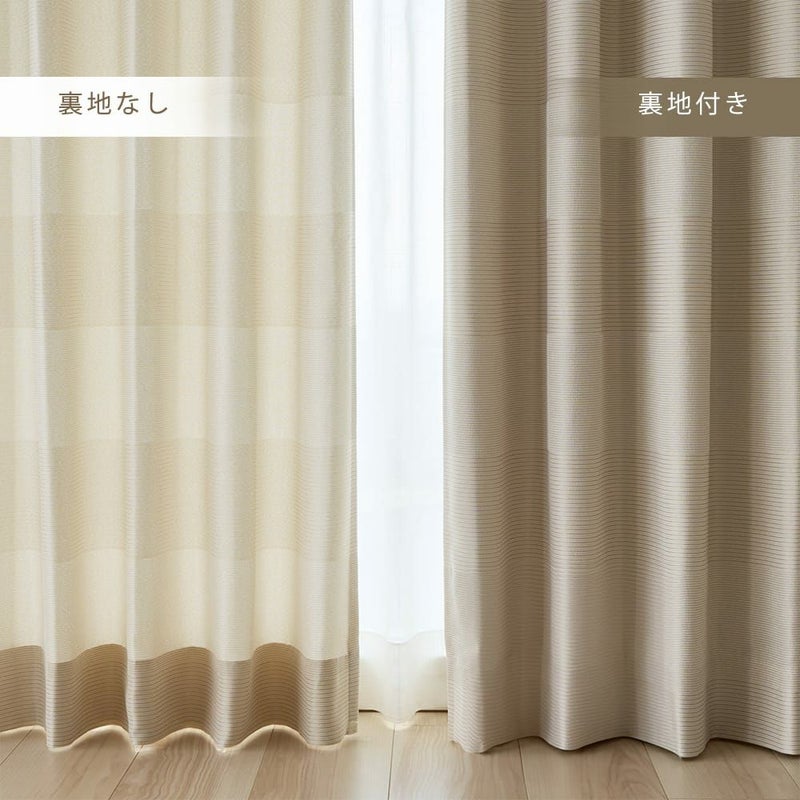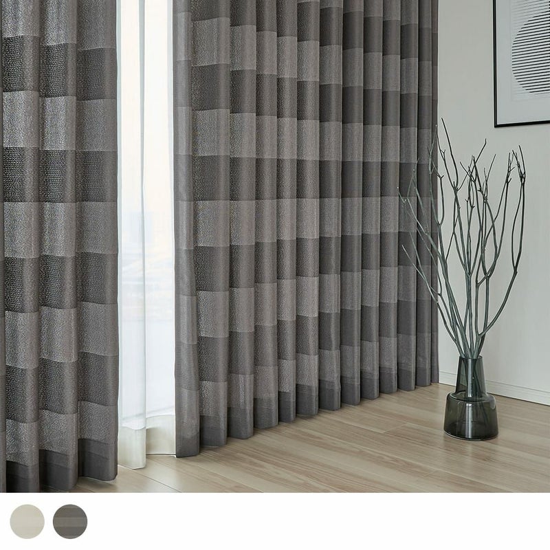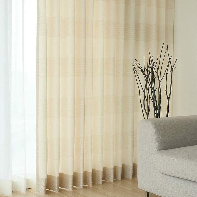 ブラックとアイボリー、どんなインテリアにも間違いなく馴染む2色のバリエーション。それぞれ違った印象でモダンな雰囲気を醸し出す。どちらのカラーも陽に照らされると、ボーダー柄がさらにはっきりと見えるのも、非遮光カーテンならではの良さ。