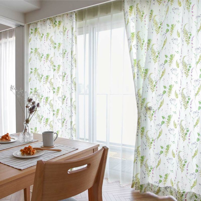 窓辺をフラワーガーデンに!美しいボタニックデザインカーテンです。ラベンダーやセージ、シダを水彩タッチで描いた、ボタニカルデザイン。ひらりと優しく舞う草花が、シャビーシックなエレガント空間を演出します。
