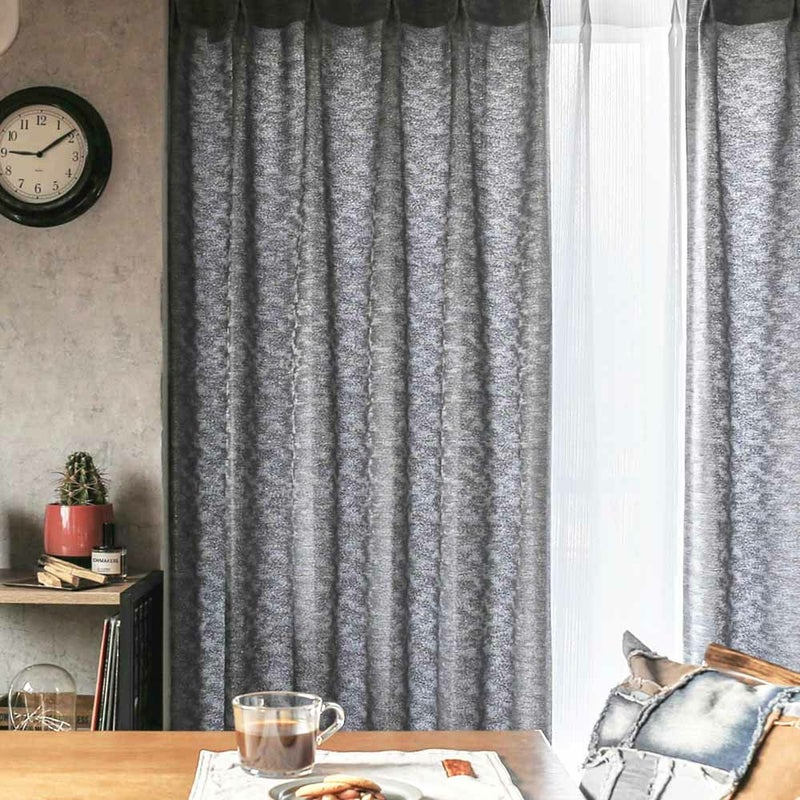 洗練されたデザインと繊細なジャカード織りで表現した、色気漂うカーテン。ミスト(霧)を彷彿させるクールな柄は、海外バルの壁面を連想させる、スモーキーな雰囲気を漂わせます。クールなデザインは、Bar風のインダストリアルインテリアにぴったりなカーテンです。