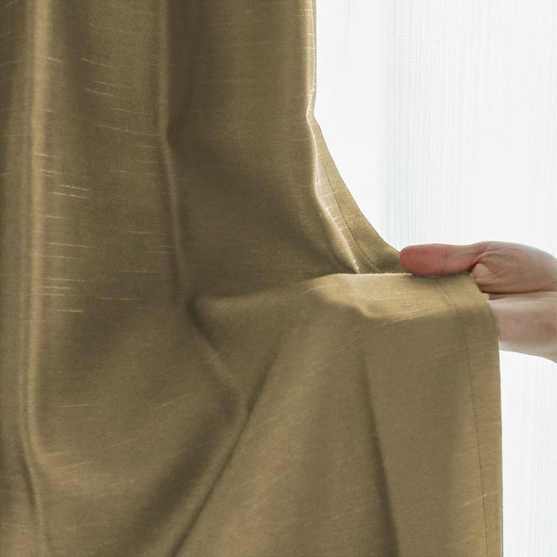 生地に耐久性と遮光性をプラスする特殊加工を施しています。この加工により、カーテンは長持ちし、外の光や視線を効果的に遮ることができます。