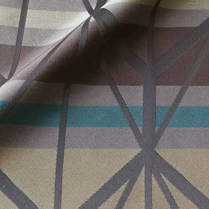 高密度に織り上げたジャカード。ラインは光沢感のある織地で、生地が動くことでツヤが生まれます。カジュアルなインテリアだからこそ、ポイントで高級感を盛り込みたい。