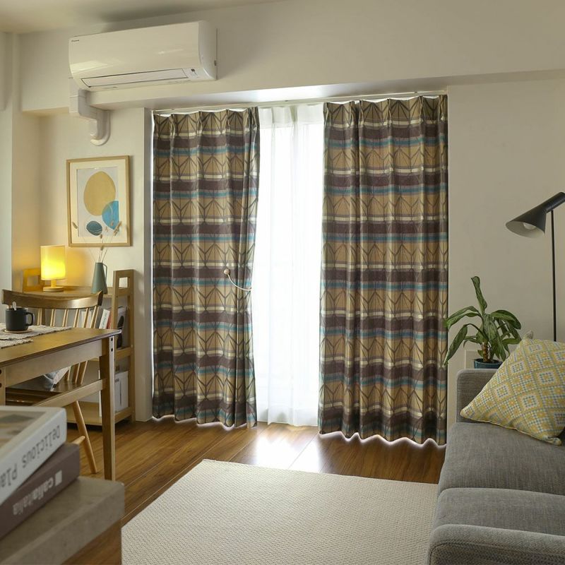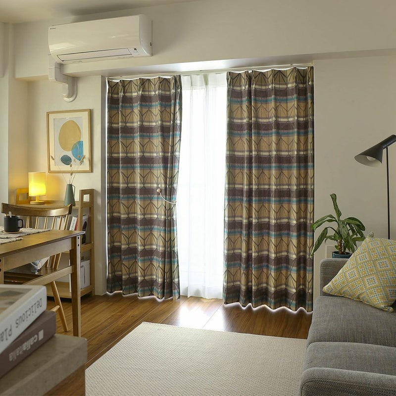 北欧デザインを思わせる、レトロモダンなグラフィカルデザイン。大人っぽく仕上げたレトロなカーテンが、インテリアのお洒落なスパイスに。