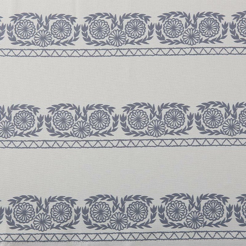 【撮影コーディネート】レースカーテン<コモン>ふっくらとした花とツタのモチーフは、メキシコ刺繍で定番な組み合わせの柄。使いやすく単色で配色し、お部屋を広く見せるボーダーラインに柄をデザインしたオーダーカーテンです。