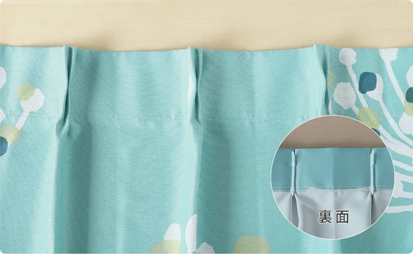 カーテンの緩やかなドレープ(プリーツ)って余り意識した事がないかもしれませんが、比べてみるとやっぱりきれいな方がお部屋がスッキリするんです。カーテンを開けた時も閉めた時も、均等に美しい曲線が生まれる「ライトウェーブ加工」がオプションでお選びいただけます。均等に整ったカーテンのヒダって、ちょっと嬉しいポイントです。もちろん、お洗濯してもきれいなプリーツは持続しますのでご安心を。