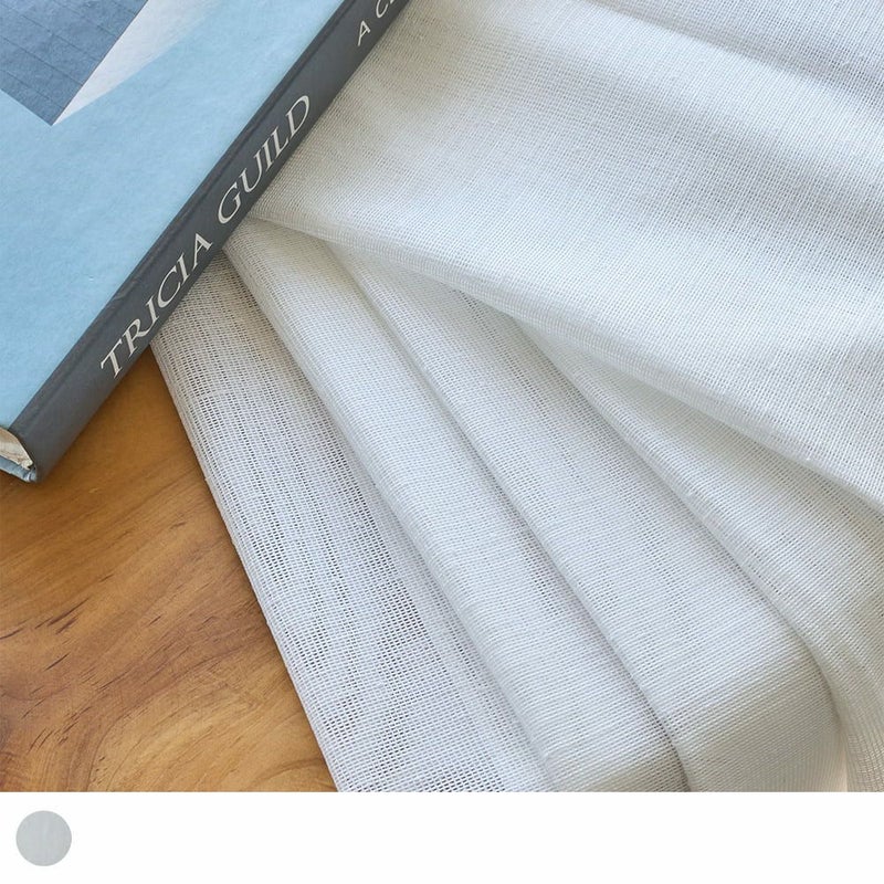 柔らかくしなやかな風合いの糸で編み上げられた生地は滑らかで、さらりとした柔らかい手触りながら、洗濯機で丸洗いできる丈夫さもある生地感。 毎日触れるレースカーテンだから、清潔さと手触りにもこだわりました。