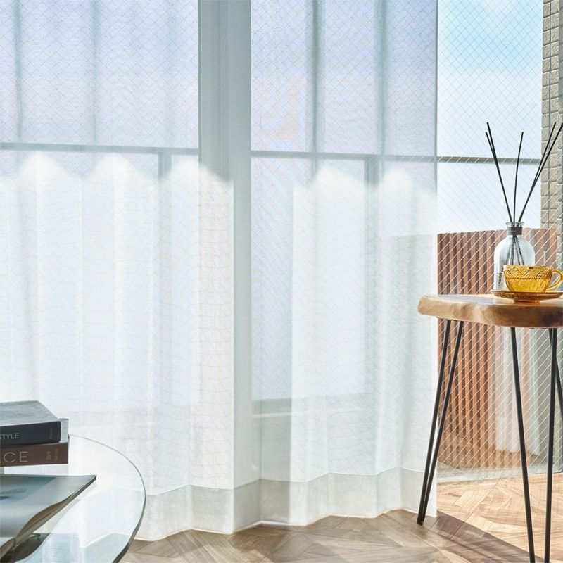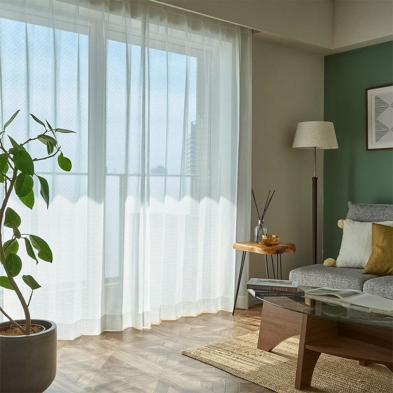 軽やかな透け感と、そこから差し込む優しい陽ざしを楽しむ。それはまさに、レースカーテンを選ぶ醍醐味でもあります。ほのかに透ける外の景色と、やわらかな陽だまりをにほっと一息。