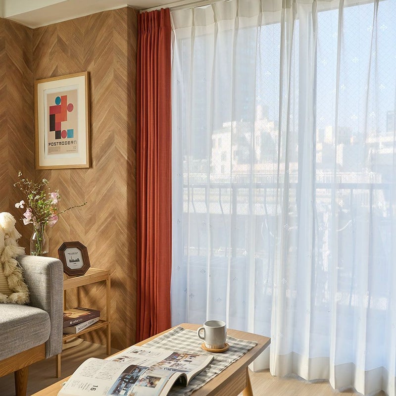 軽やかな透け感と、そこから差し込む優しい陽ざしを楽しむ。それはまさに、レースカーテンを選ぶ醍醐味でもあります。ほのかに透ける外の景色と、やわらかな陽だまりををお楽しみください。