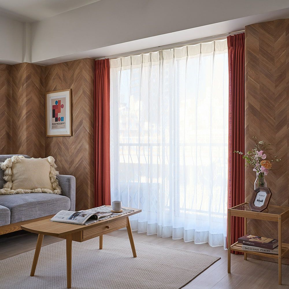 軽やかな透け感と、そこから差し込む優しい陽ざしを楽しむ。それはまさに、レースカーテンを選ぶ醍醐味でもあります。ほのかに透ける外の景色と、やわらかな陽だまりををお楽しみください。