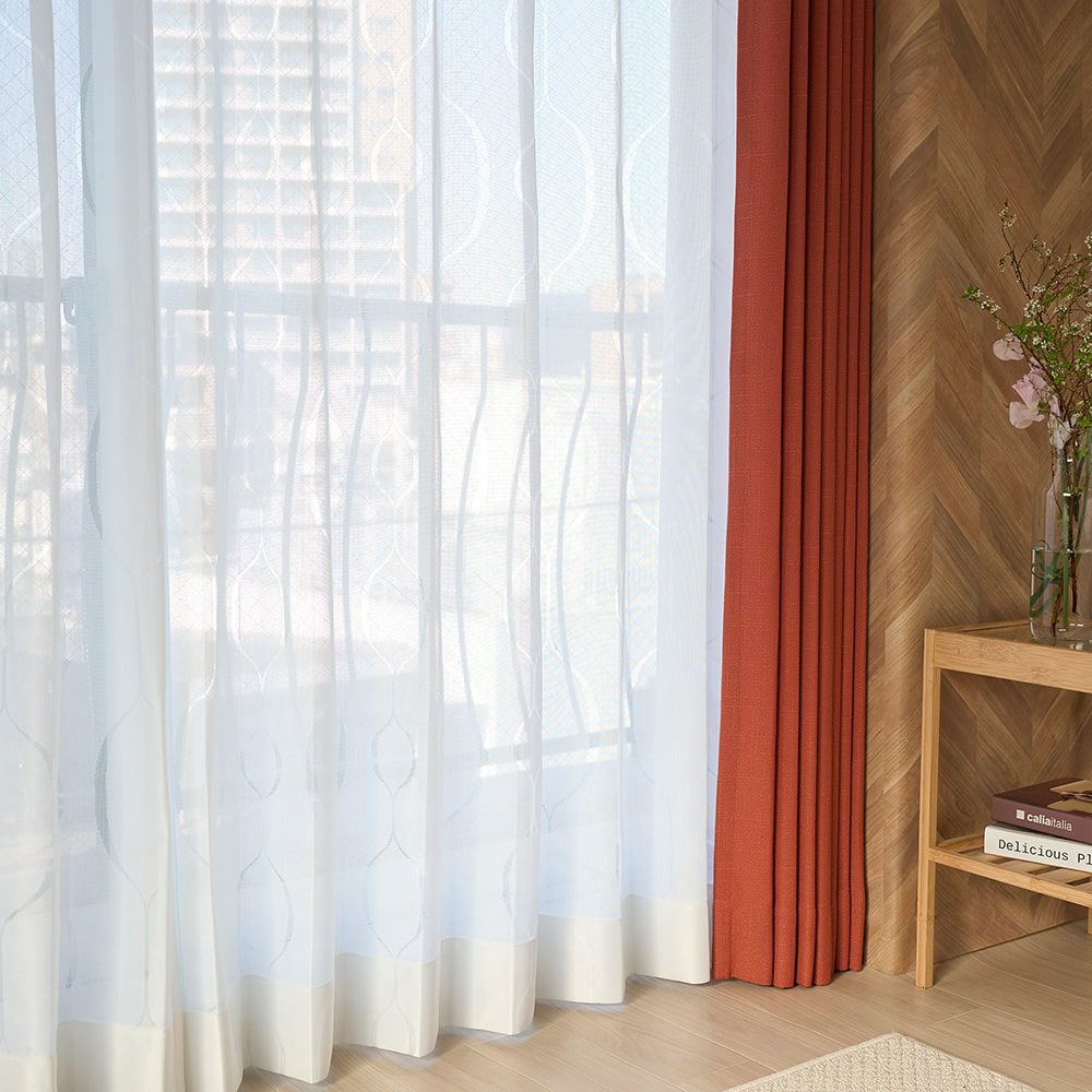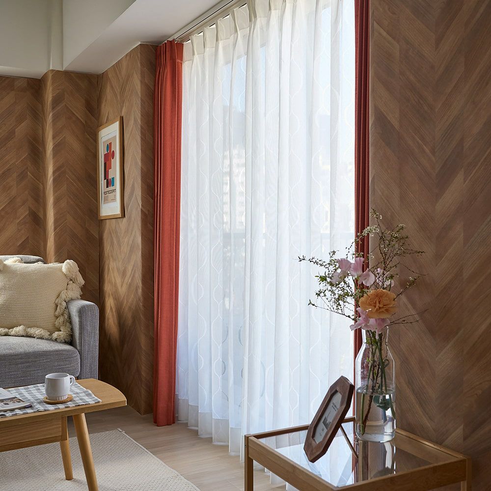 どこかレトロな空気の幾何学的なウェーブデザインが、お洒落な雰囲気。 インテリアにそっと馴染みながら、センスのあるインテリアを叶えてくれます。ドレープカーテンとのコーディネートも楽しんで。