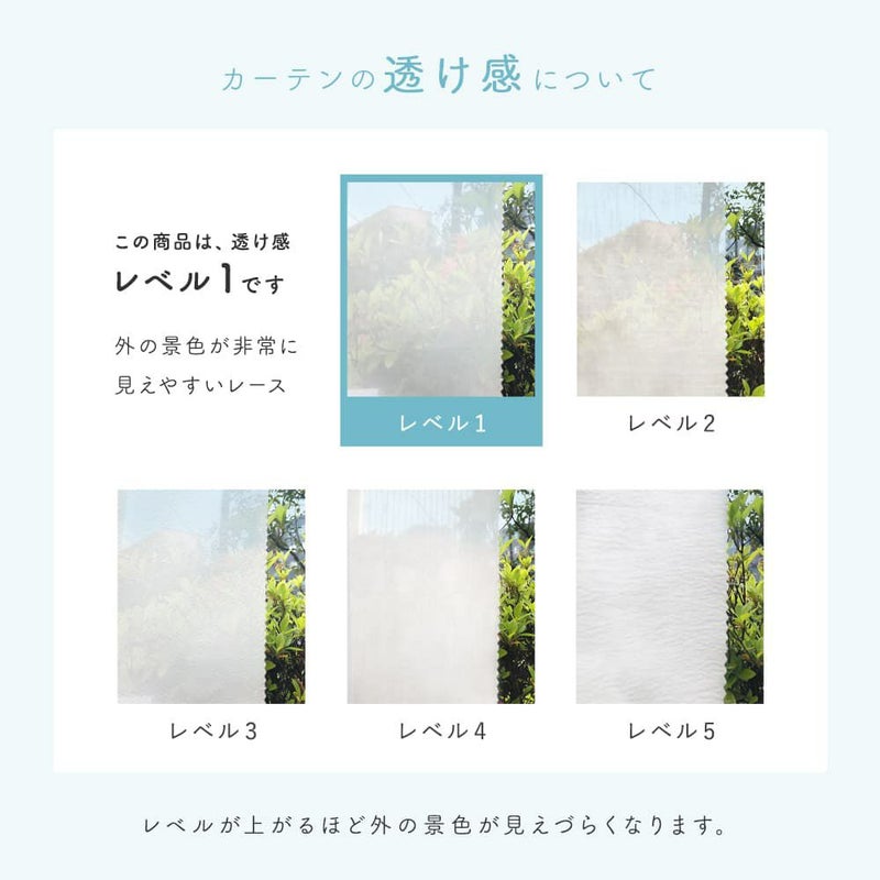 軽やかな透明感がある、非常に見えやすいレースです。外の景色を存分に楽しめるので、青空がより嬉しくなるレースカーテンです。