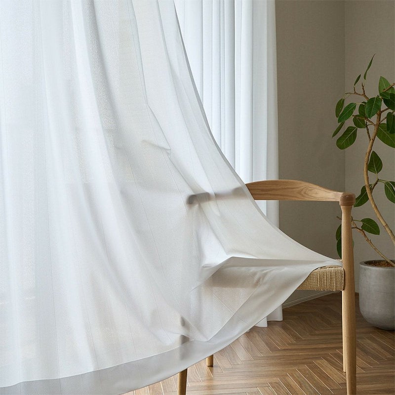 やわらかな風合いと、さりげないストライプが魅力の高機能ミラーレースカーテン。 馴染みのよいホワイトカラーで、どんなインテリアにも溶け込む万能な一枚です。 TEIJINのエコリエ繊維を使用しながらも、手に取りやすい価格もうれしいポイント◎