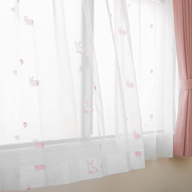 外の景色を感じられる、程よい透け感のレースカーテンです。陽に当たると、うさぎさんが喜んでいるみたい♪レースカーテンならではの、軽やかな透明感を感じていただけます。