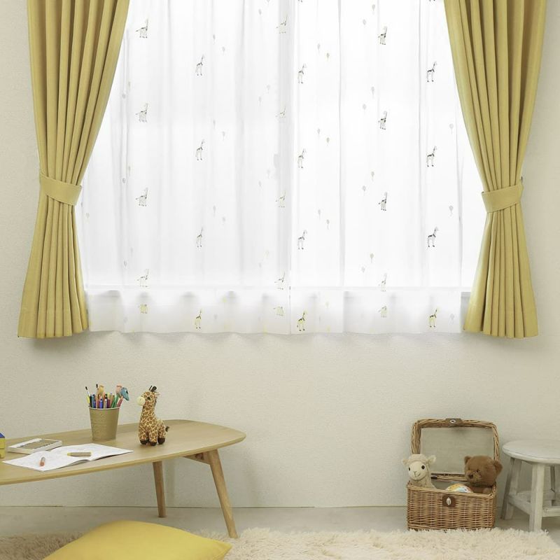 2級遮光と明るいイエローが可愛らしいコテージポップは、子供部屋で人気のドレープカーテン。キリンさんが描かれたレースカーテンとコーディネートすれば、とっても可愛いお部屋に♪
