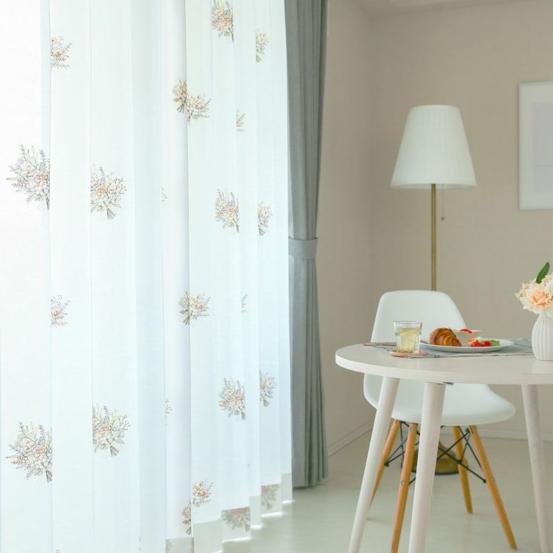 刺繍の製法上、カットした糸が数ミリ程度残る場合があります。また刺繍の寸法は商品によって変わる場合がありますが、刺繍カーテンの特性としてお楽しみください。