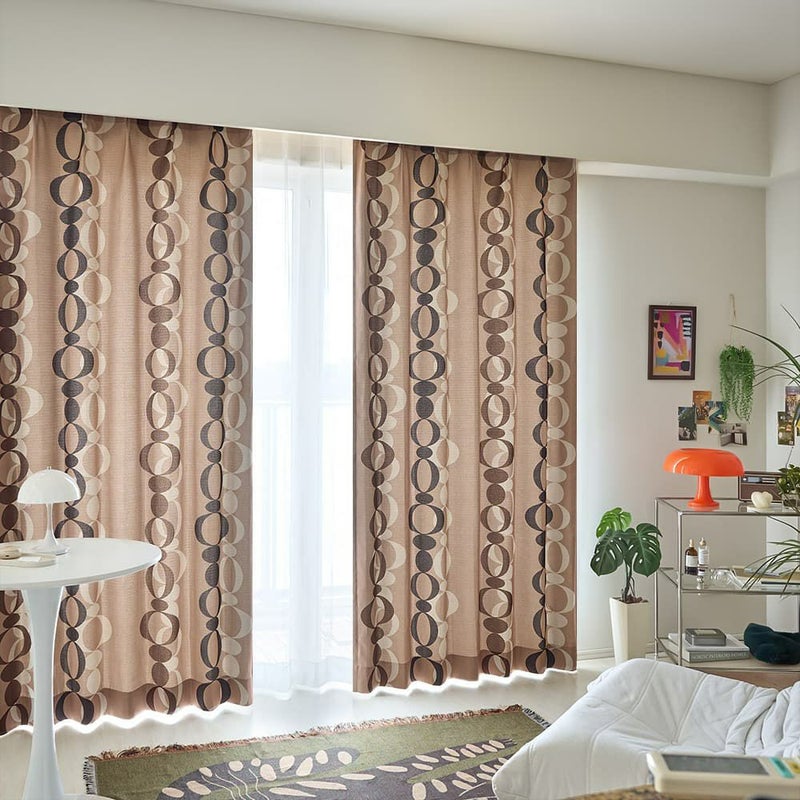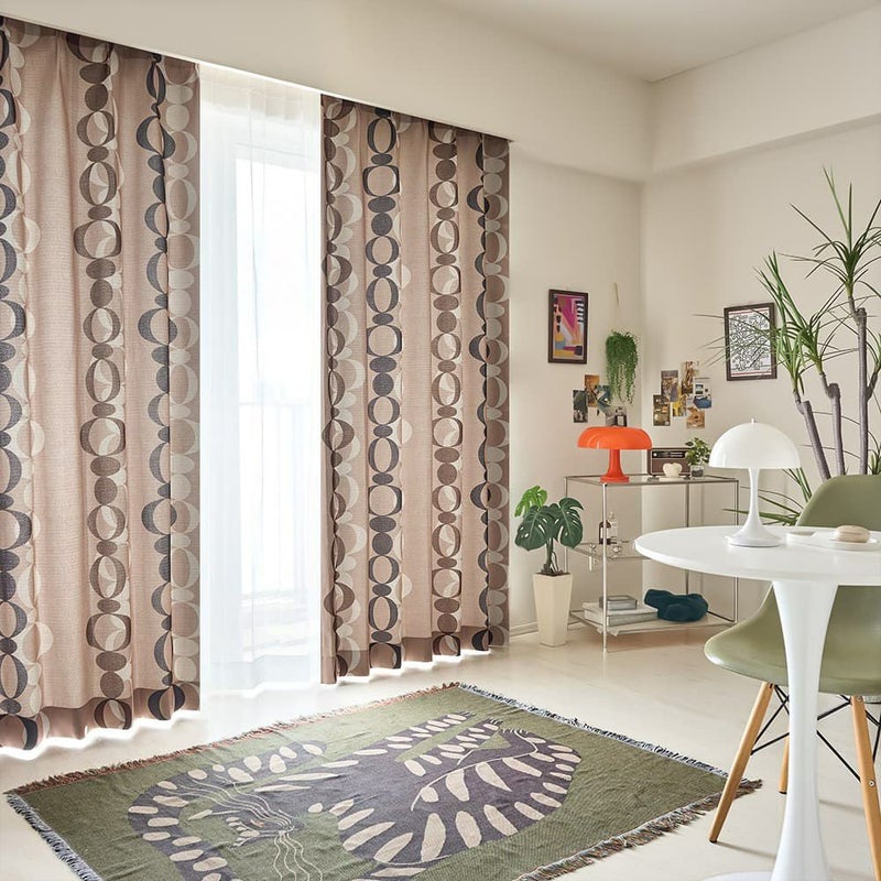 チェーンのように並んだ不規則な丸モチーフがダイナミックに表現された、ミッドセンチュリーなデザインカーテンです。少しくすんだようなレトロカラーで、韓国風インテリアをアップグレードしてくれます。こだわったコレクションたちの一部に加えたい、アートのようにおしゃれな1枚です。
