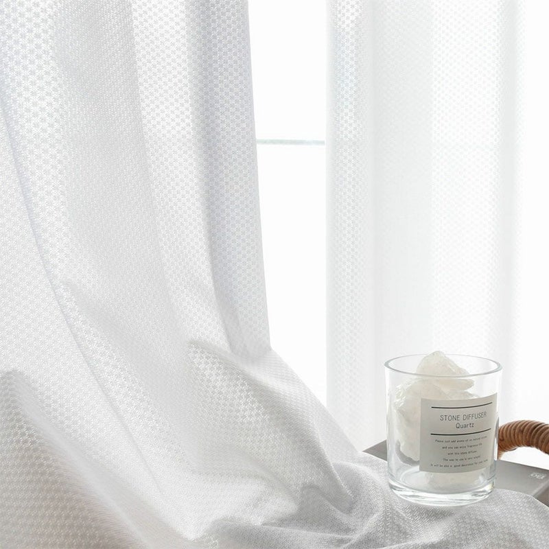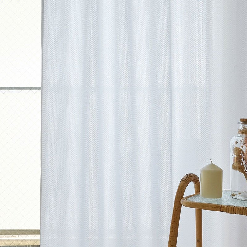 どんなカーテンにも、どんなインテリアにも取り入れやすい、シンプルなデザイン。ドットのような控えめな柄が、主張しすぎず、コーディネートを選ばない合わせやすいレースカーテンです。