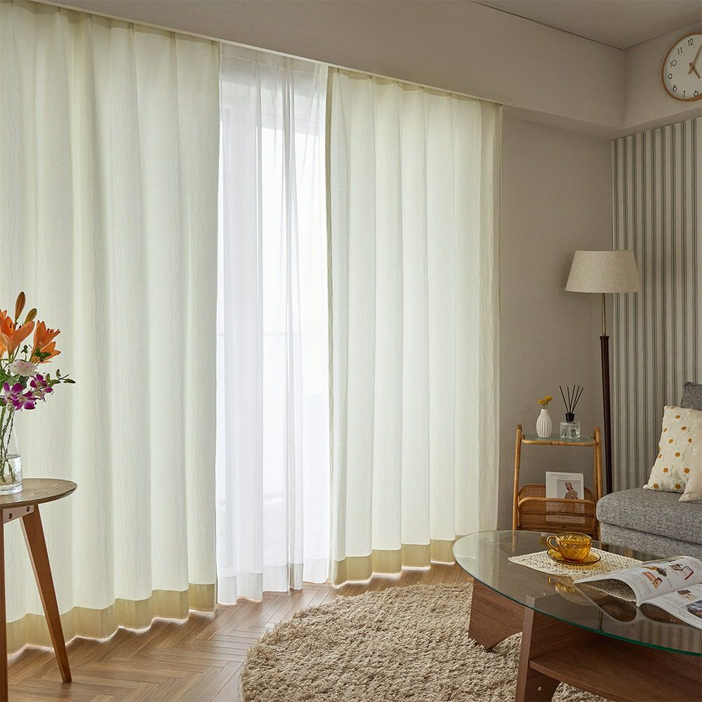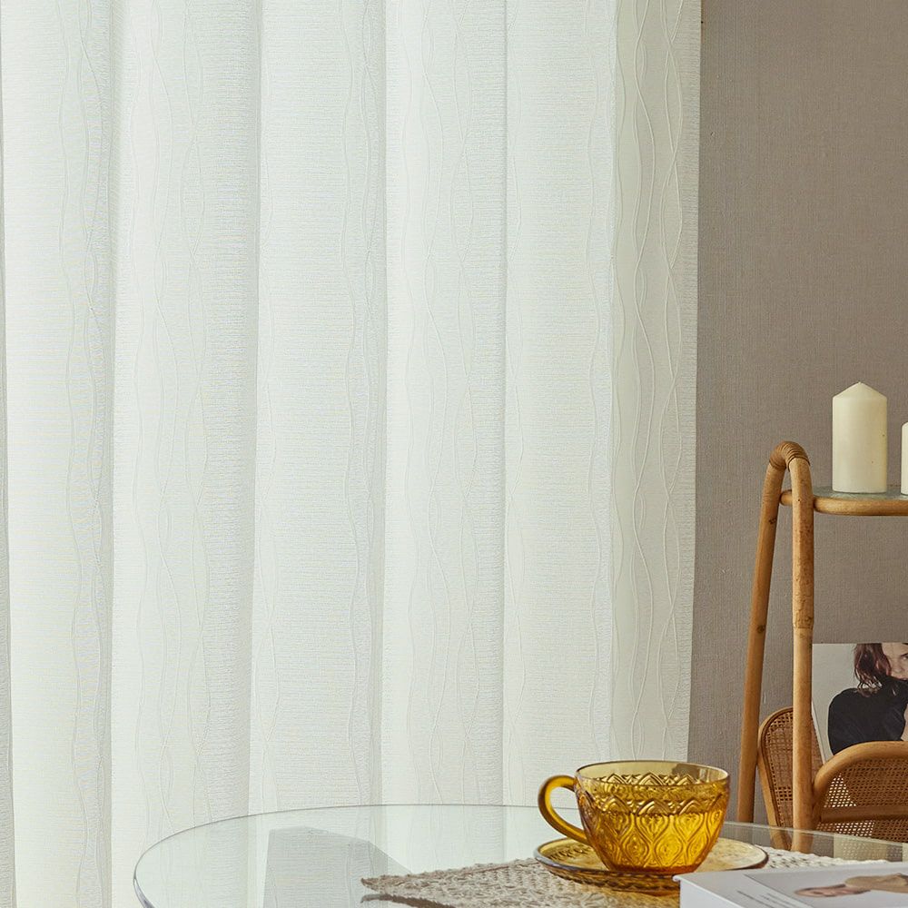 上品ながらどこかナチュラルさもある生地感に、洗練されたウェーブパターンが窓辺を美しく引き立たせてくれます。どんなインテリアにも合う主張しすぎないデザインが、ナチュラルモダンな雰囲気で、居心地のいい空間を演出してくれます。