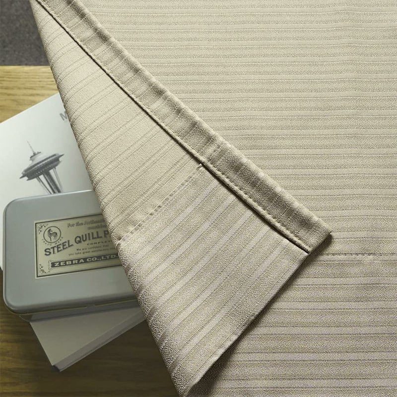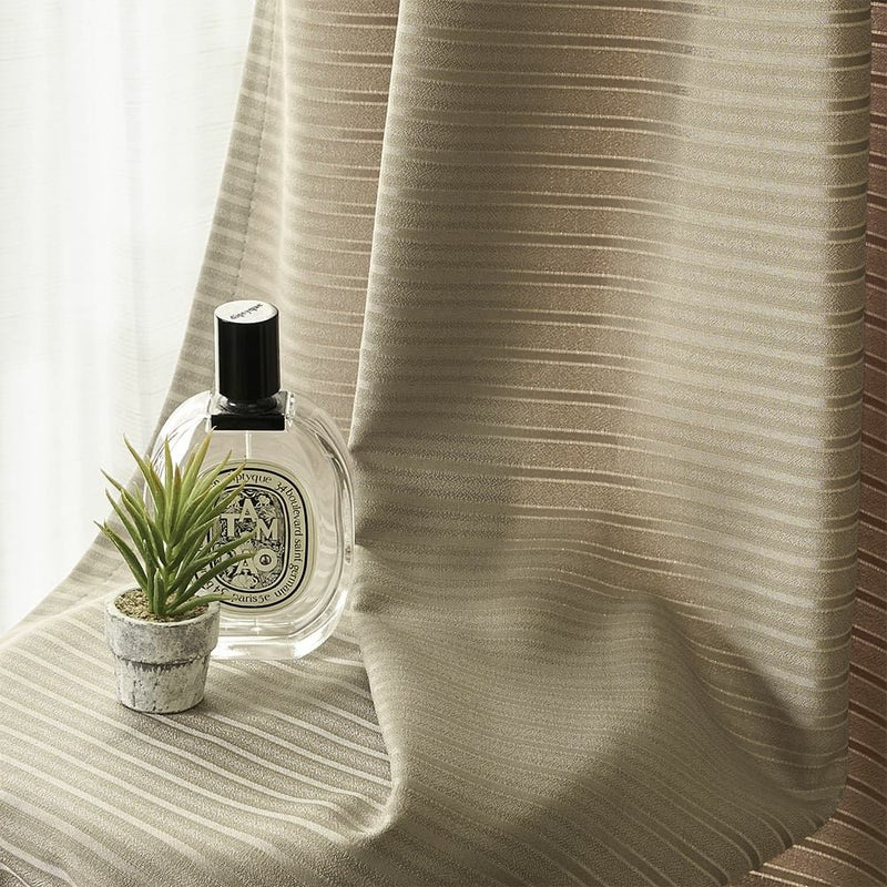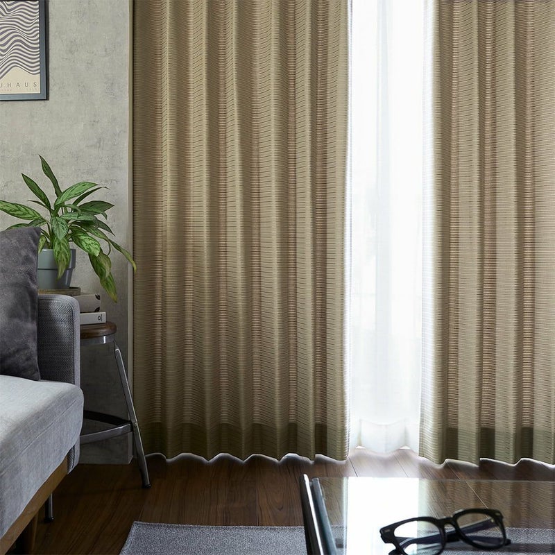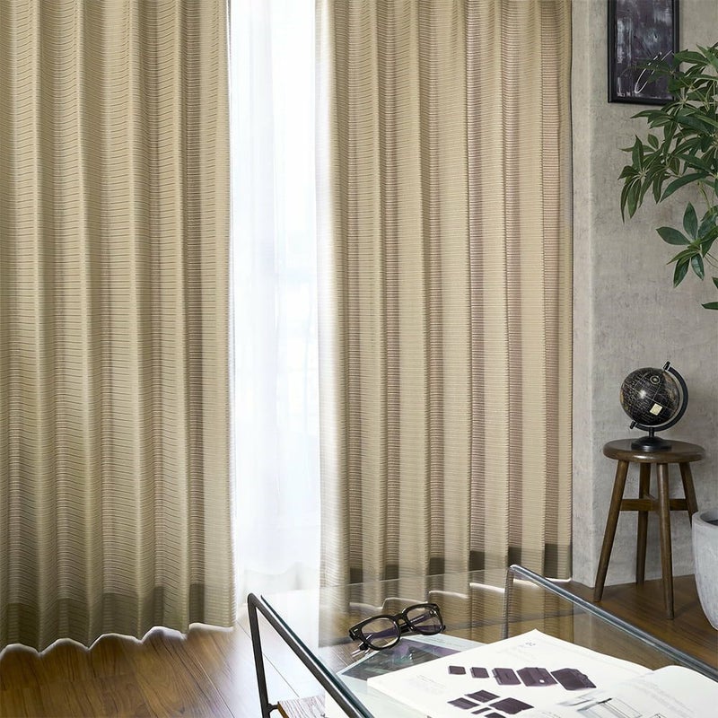 シンプルなボーダーながら、ジャガード織が与えるリッチな印象。いつもの空間がこのカーテンで落ち着きのあるスペースに様変わりします。