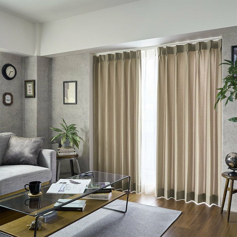 シンプルなモダンインテリアが引き立つ、優雅な印象のボーダーカーテン。在庫限りの為、お手頃なアウトレット価格でご提供します。是非お手にお取りください。