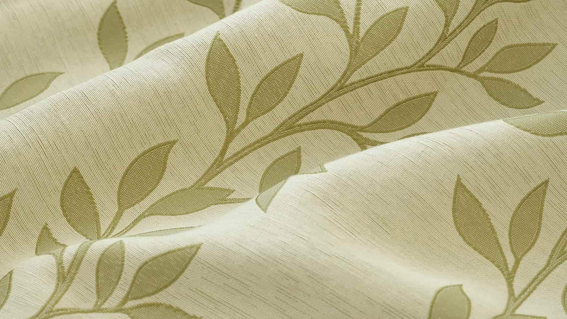 柔らかな色合いと、若葉のシルエットが上品かつ爽やかな印象の生地