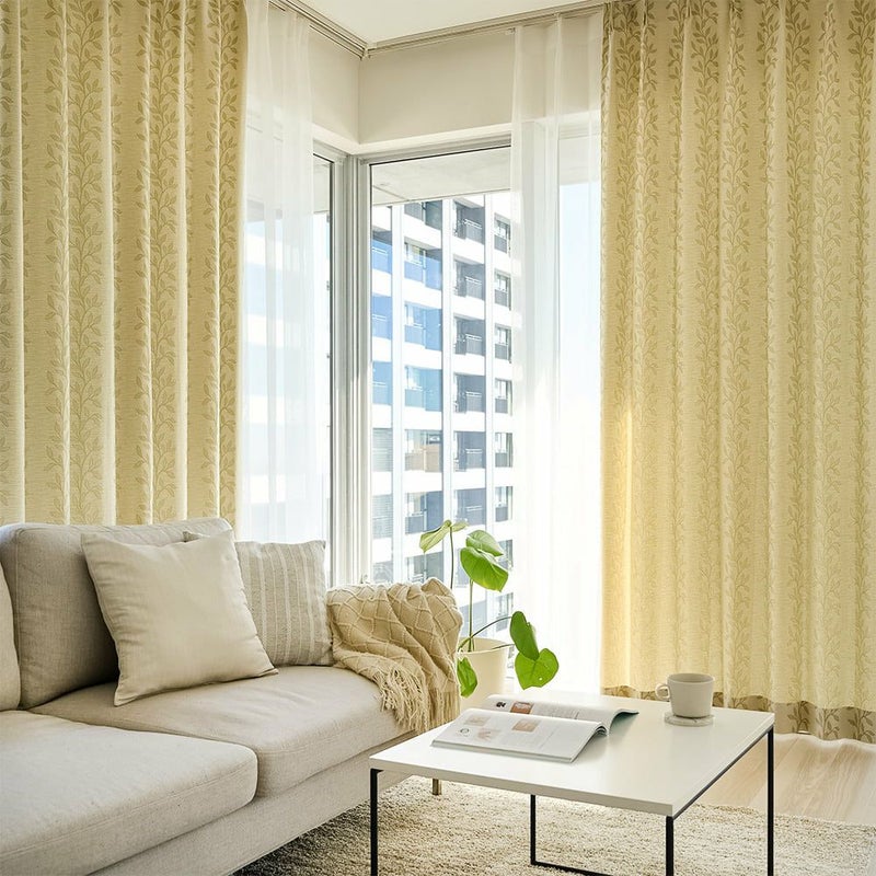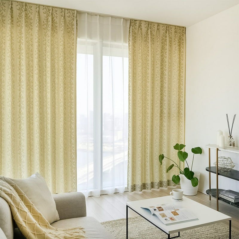 上品なリーフ柄の非遮光カーテン