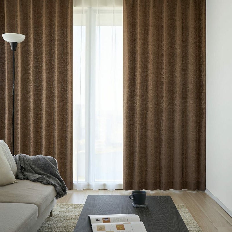 国内大手カーテンメーカーの上質なジャガードカーテンが、アウトレット限定の特別価格で登場! 重厚感のある上品なブラウンカラーに、繊細なダマスク模様を施した、美しい3級遮光カーテン。ジャガードならではの、奥行きのある華やかな表情を見せてくれる一枚です。