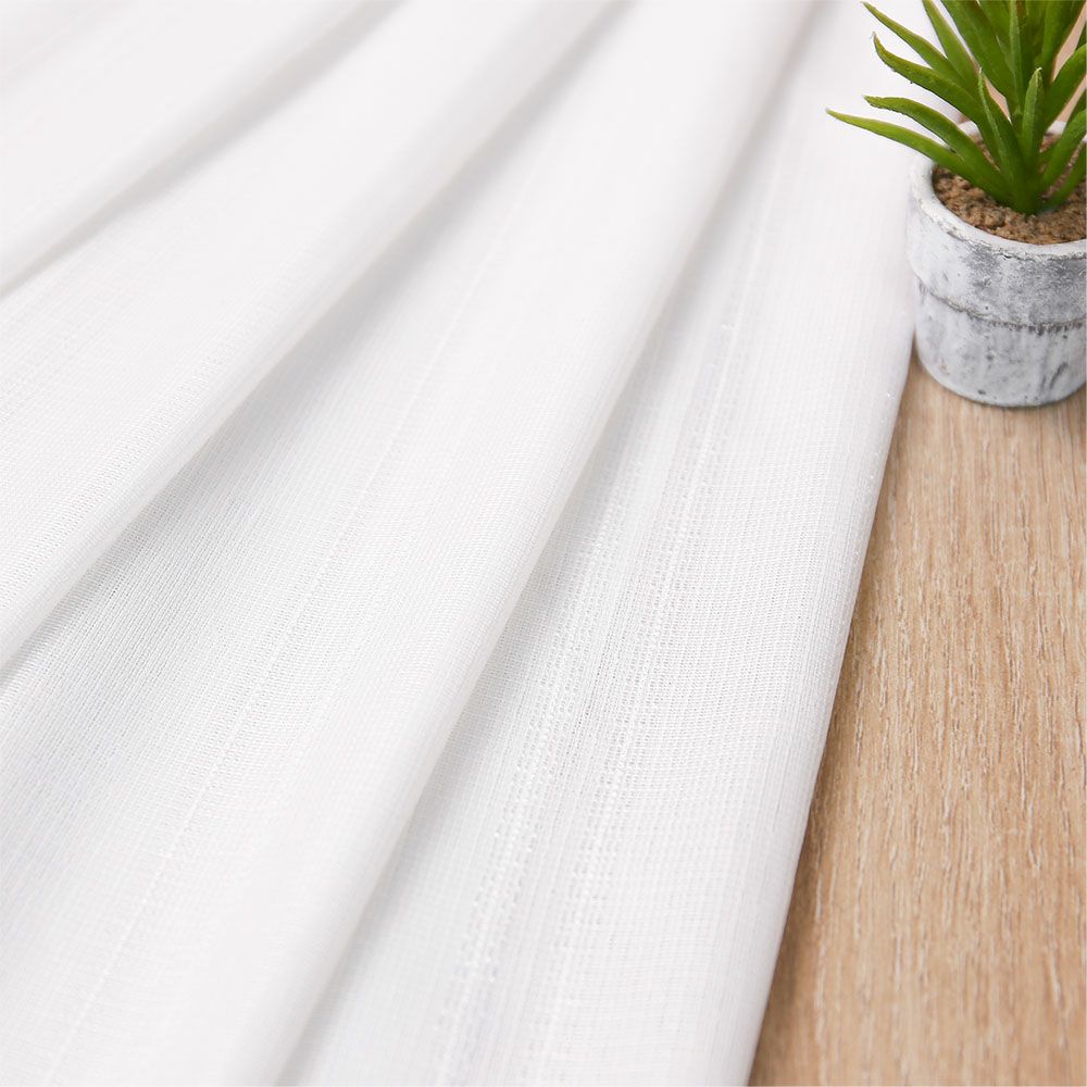 熱の力を加えてカーテンのヒダを整える、ライトウェーブ加工付き。 ドレープの美しさを、届いた時から楽しむことができます。 カーテンを開けた時は、たたまれたヒダがきれいにまとまり、すっきりとした窓周りに。 いつ見ても美しい姿を眺めることのできる、素敵な窓辺を演出してくれます。